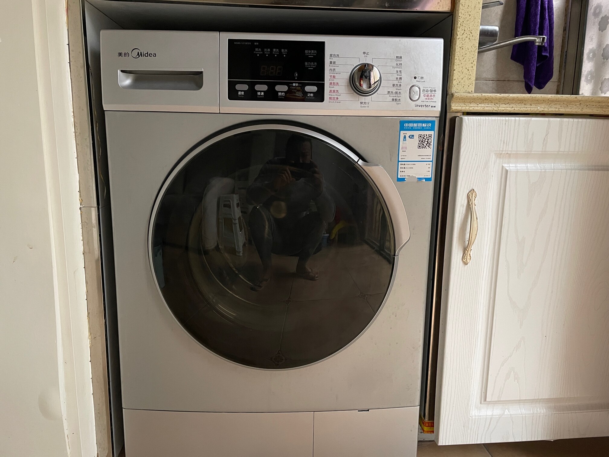 有一台美的滚筒洗衣机,二手出售了。