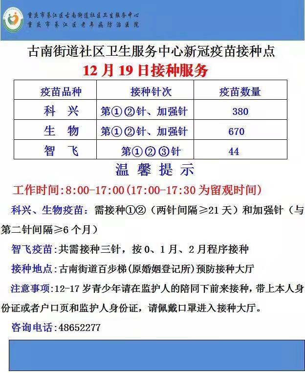 人民医院,百步梯,大石路,沙溪都可以,但是科兴的加强针,似乎綦江都没得,今天我去了人民医院和百步梯都缺疫苗。