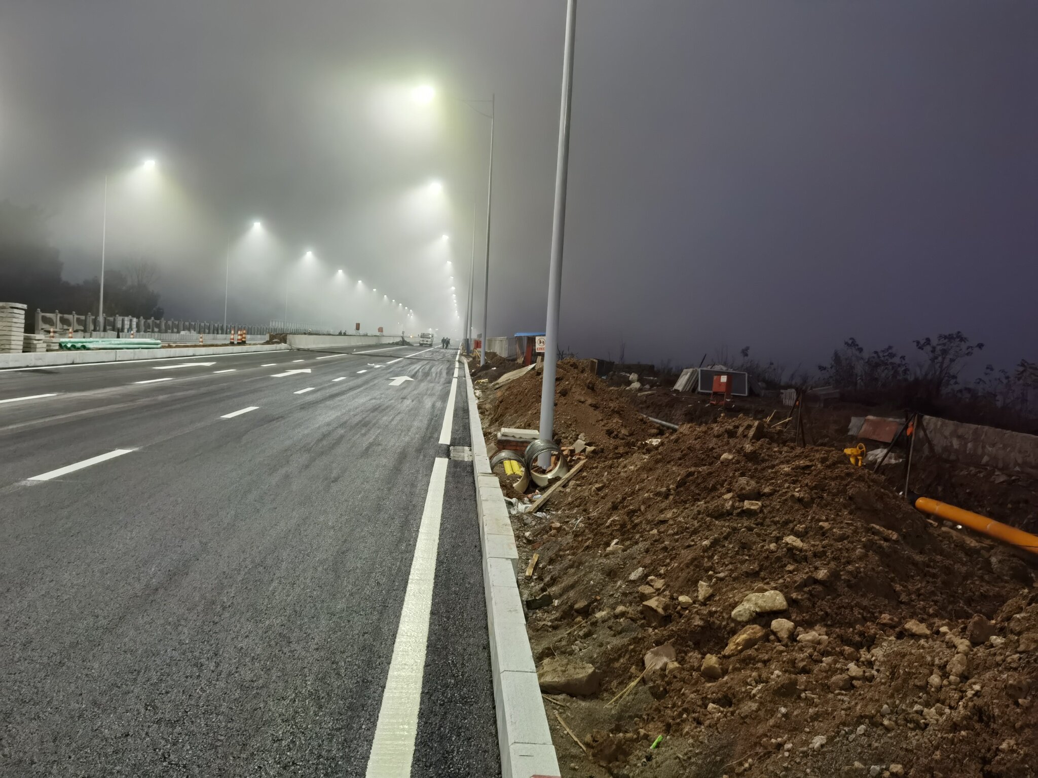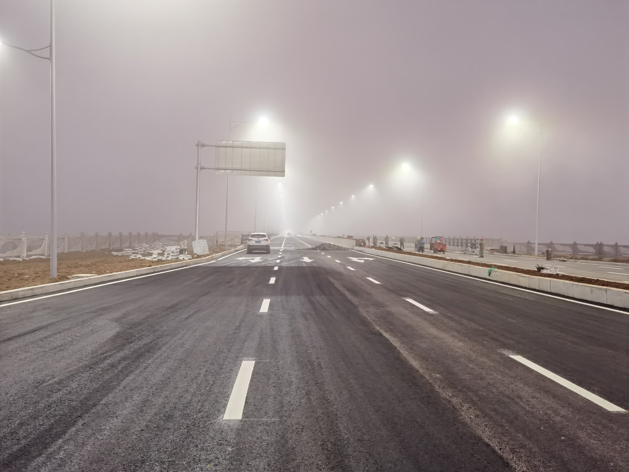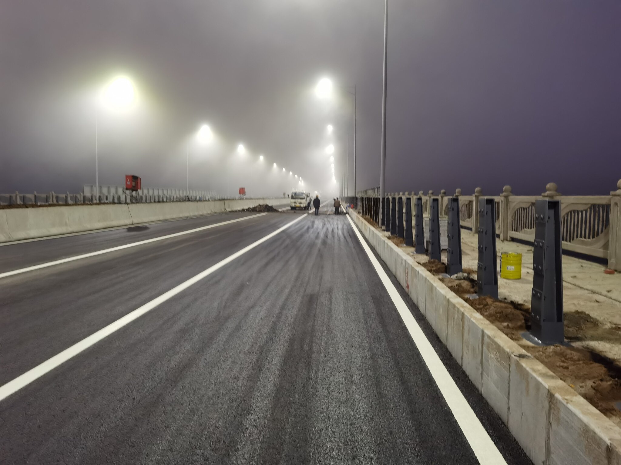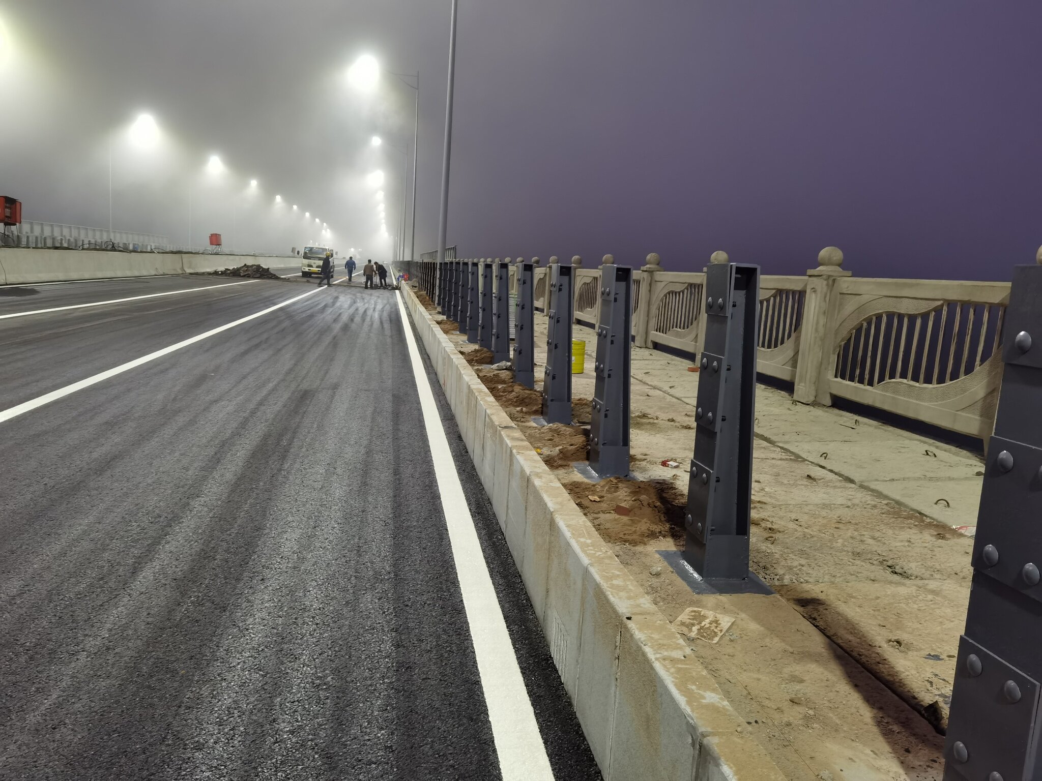 听现场工人师傅说,元旦通车。我看通车得行,人行道后面慢慢整。就是伸缩缝打混泥土了。