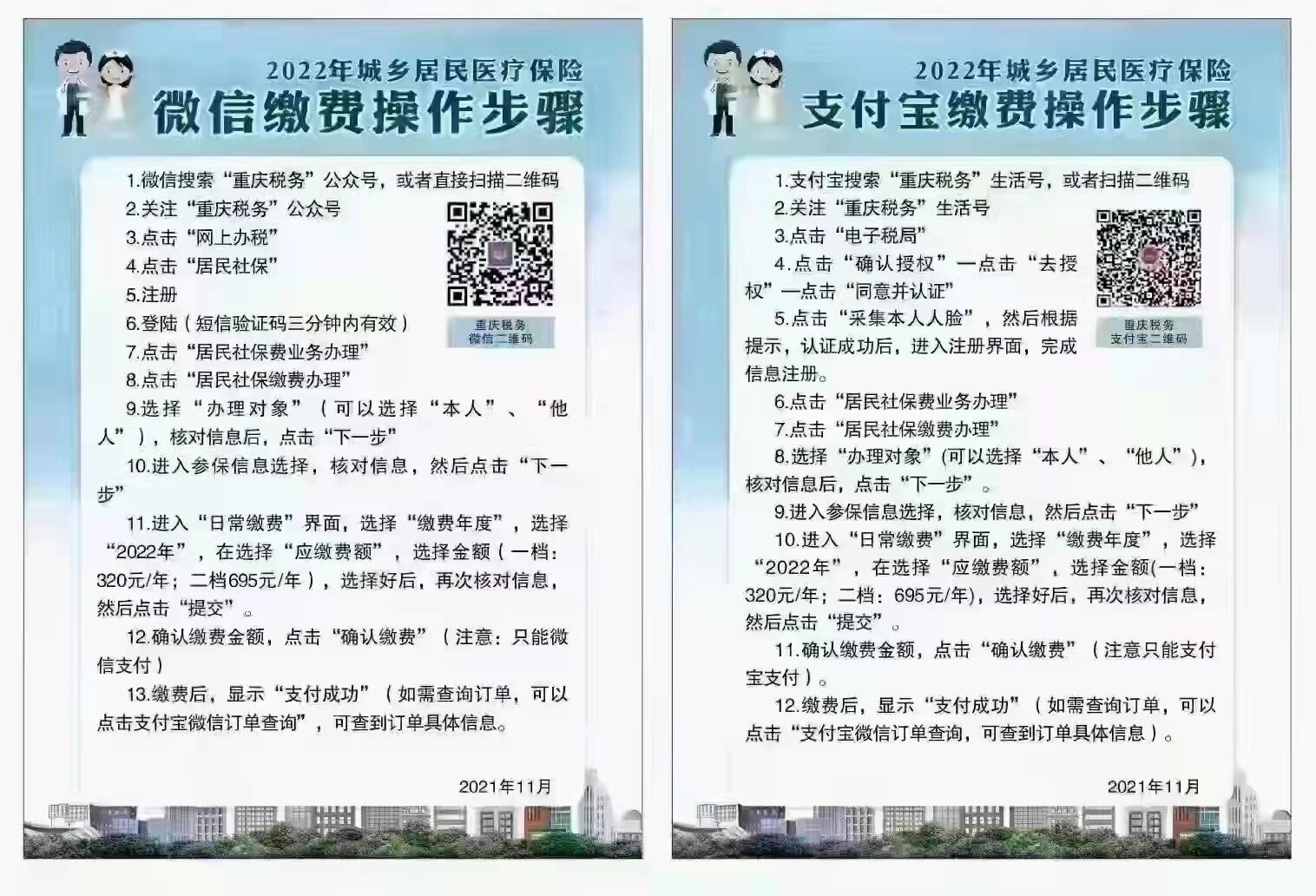 支付宝(微信)—重庆税务—登陆—然后里面就有个居民医保,按提示输入信息就可以了