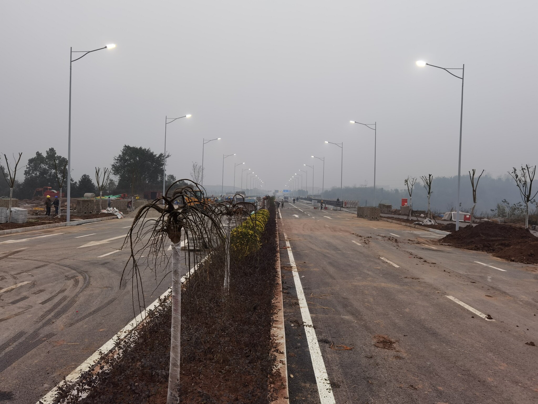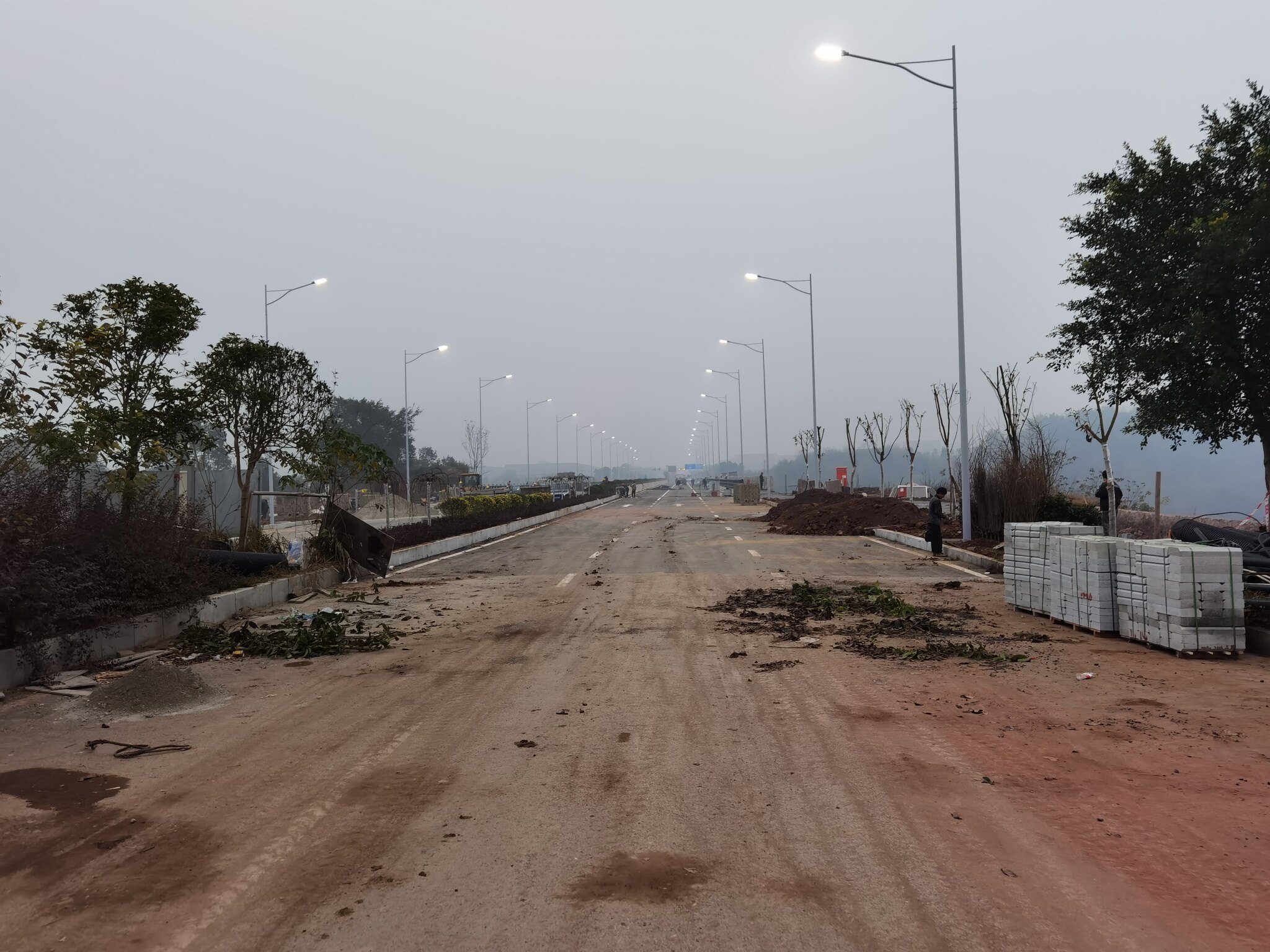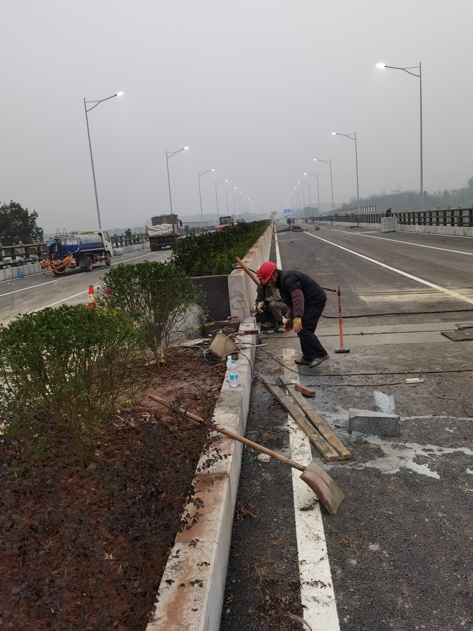 只要能通车就行,配套工程完工后慢慢整也不迟