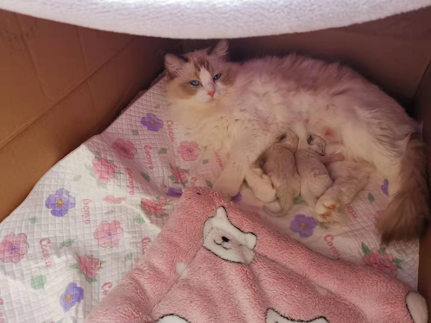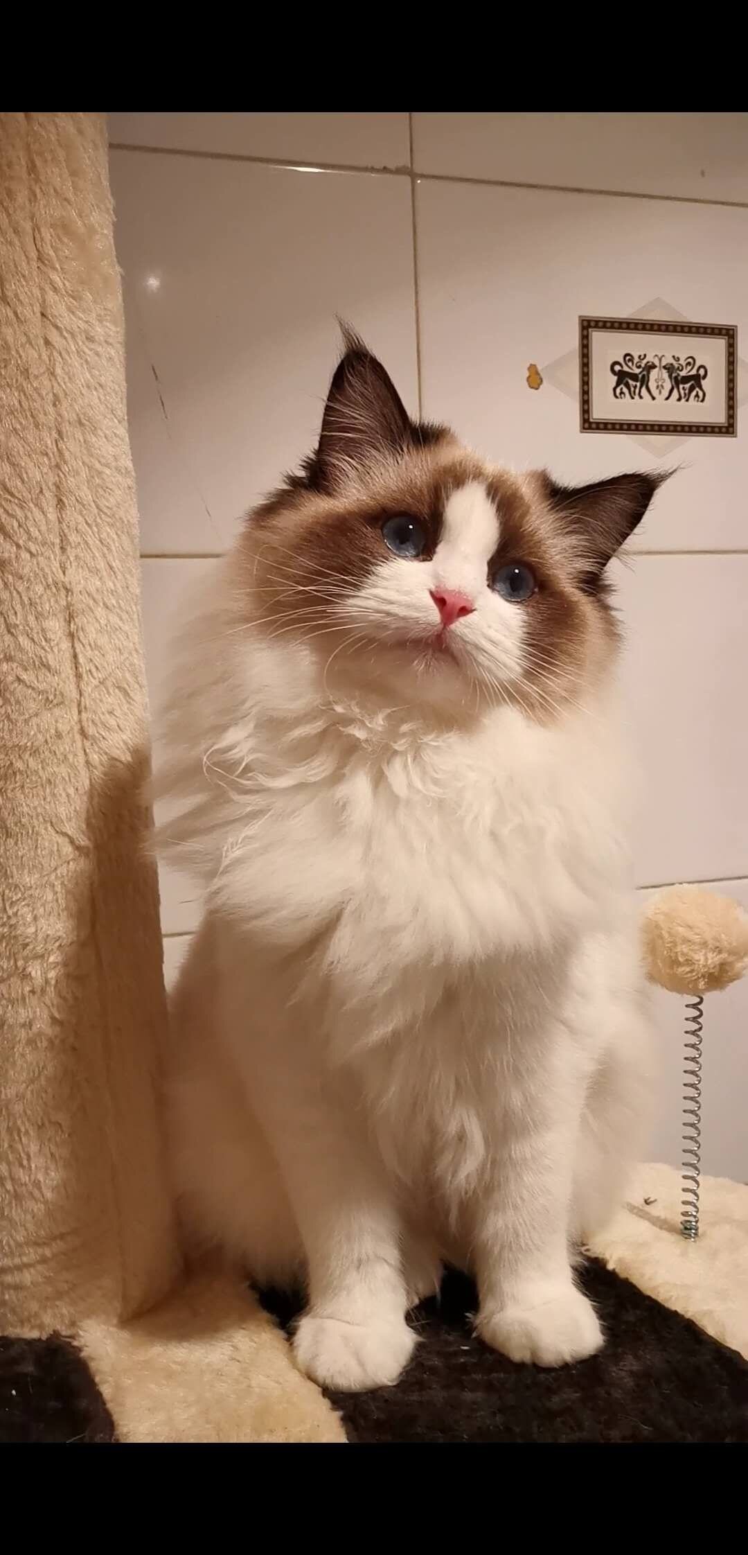 布偶猫弟弟妹妹两个月各一只,眼色素高,长得甜美活泼粘人。第一二张是两个月的时候,第三张是才出生几天,第四五张是猫妈猫爸。
