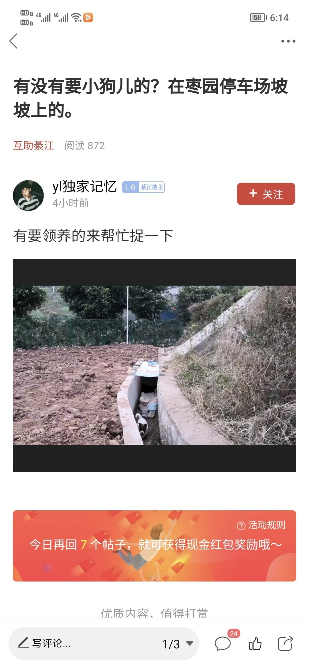 有没有谁家有多的小狗。随意那种都行,给农村看家的,小型犬种就算了,看不住家,有的联系,城区不远的自取