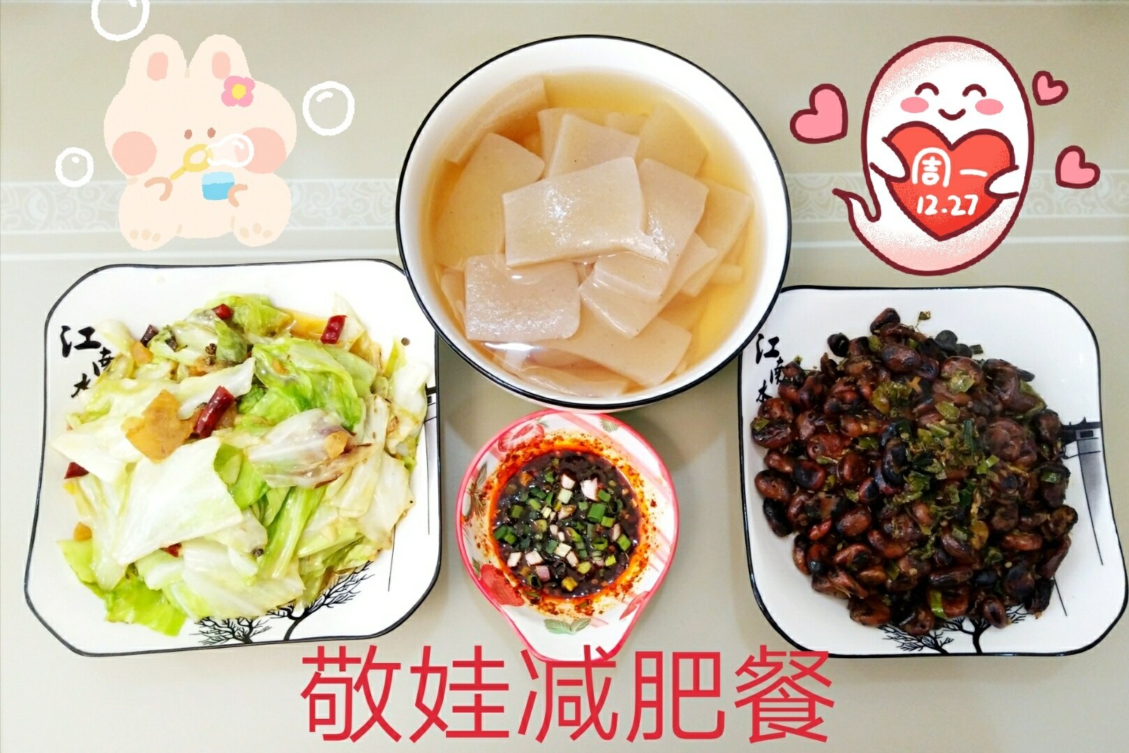 午饭晚饭必须得有嘎嘎,早餐小面或者稀饭煎饺就行。