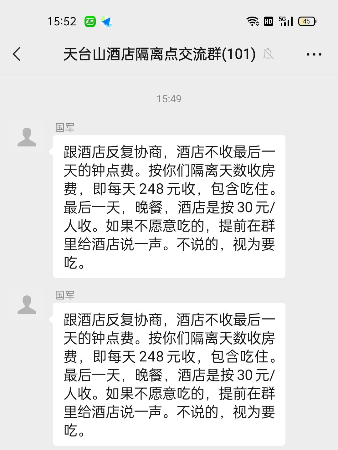 朋友在外地隔离是免费,还是四星级酒店。每天营养套餐安排吃的还可以。