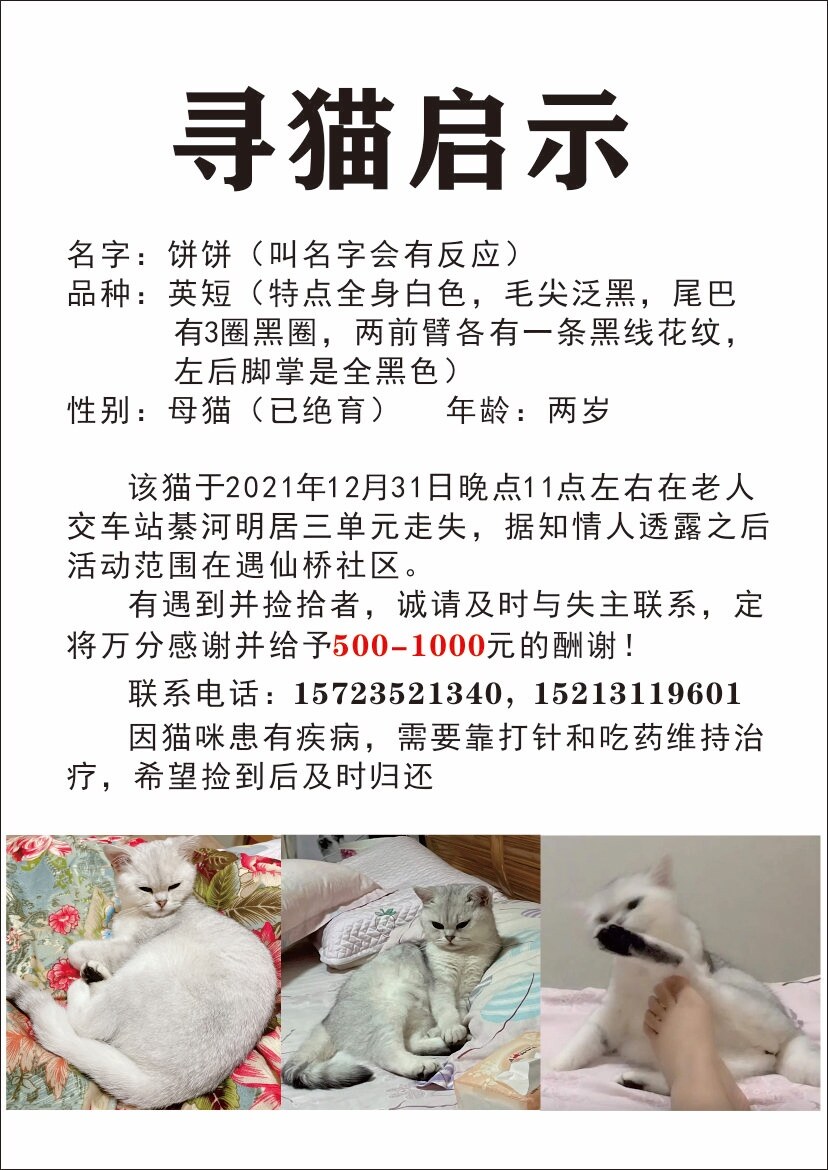 寻猫,家里英短银渐层在下北街走失 |