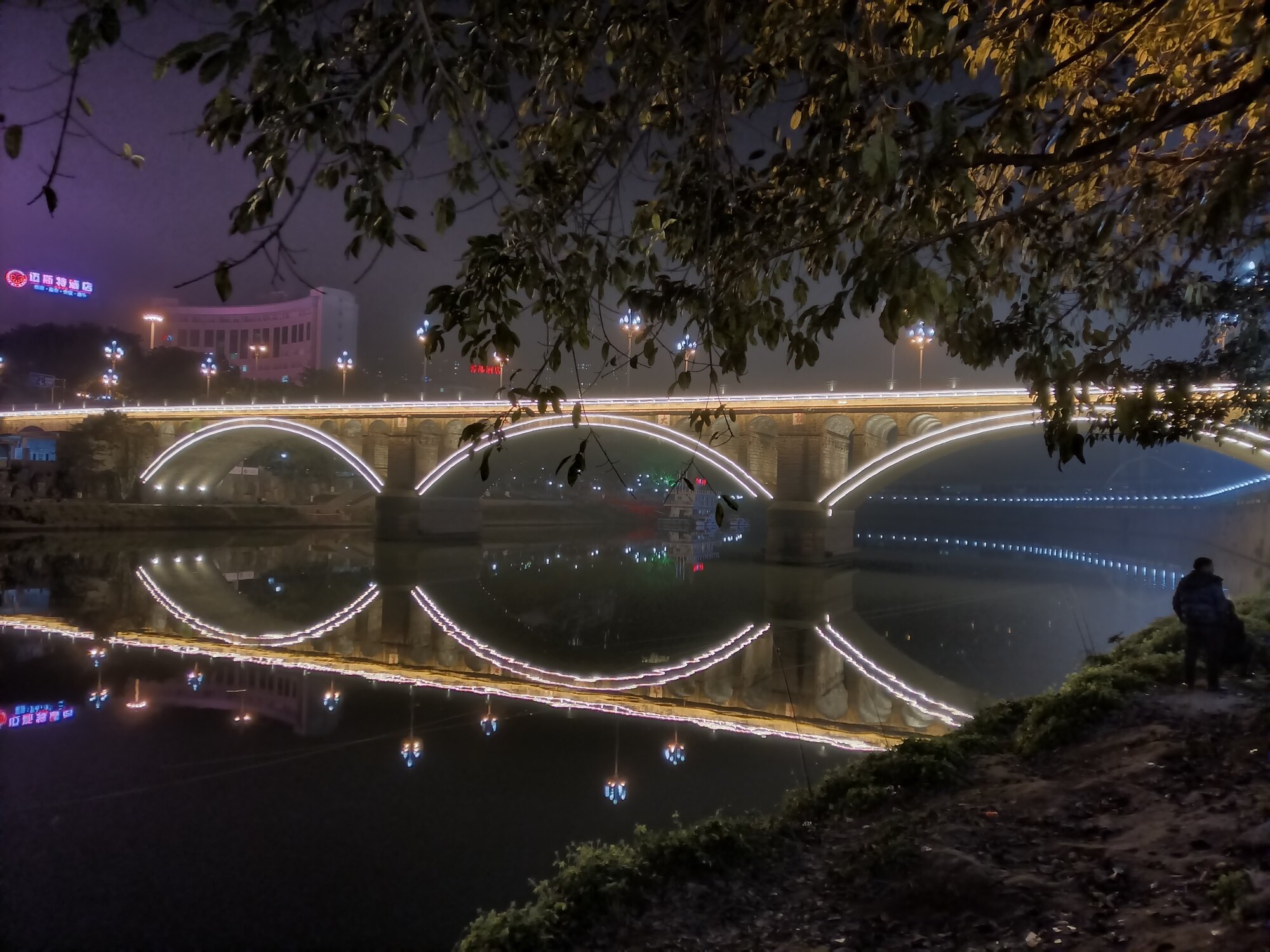 饭后河边走走,美景在身边,还有悠闲的夜钓翁