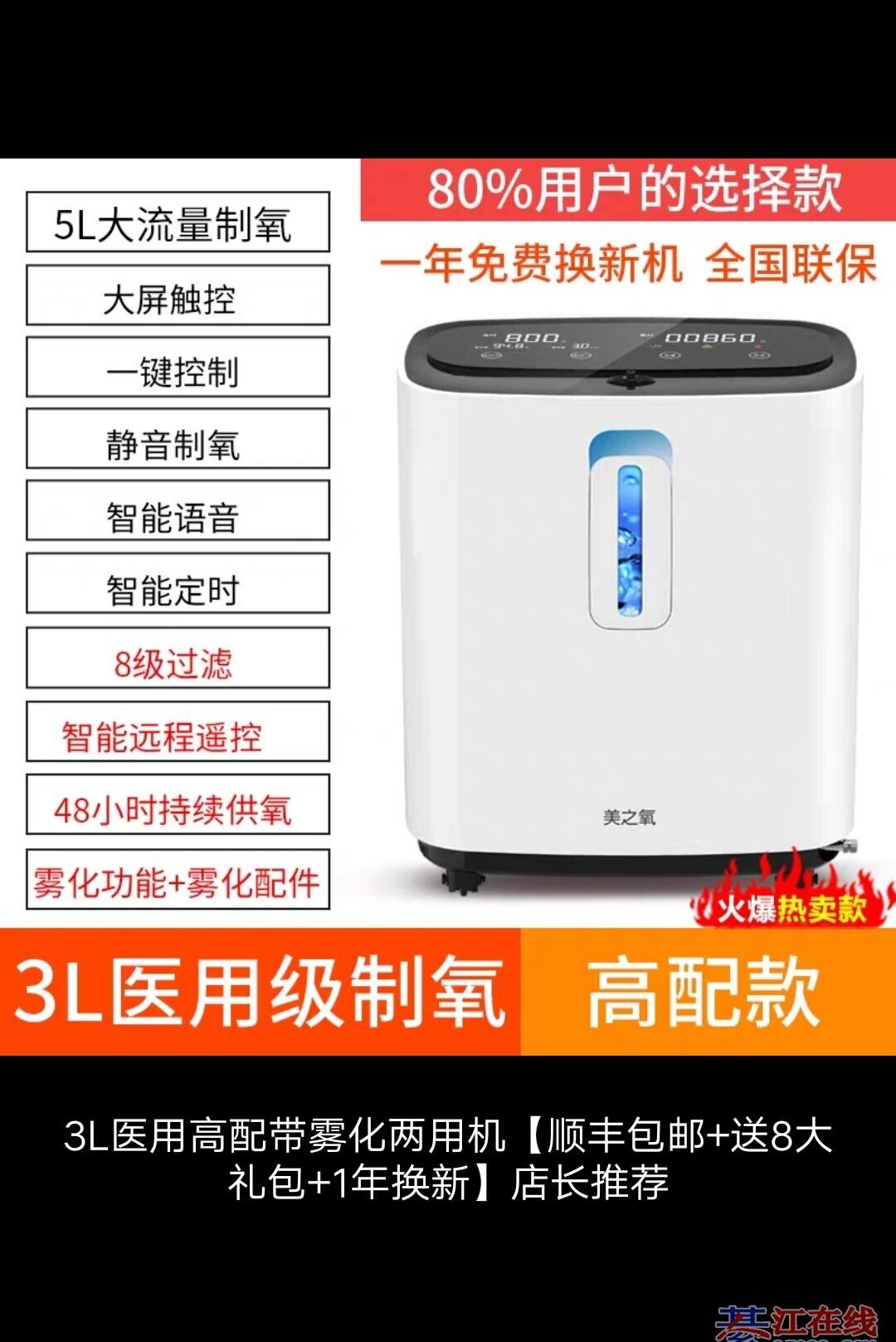 2019年1月份买的,只用了大半年,后面一直闲置在家,可制氧可雾化。