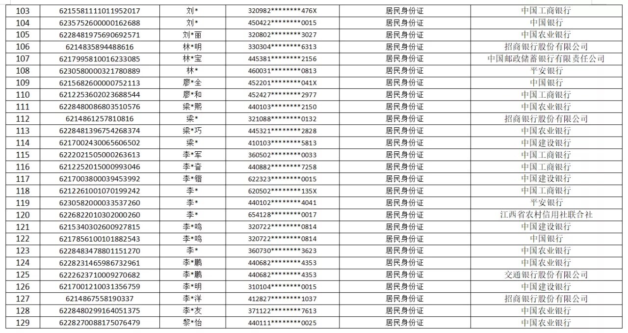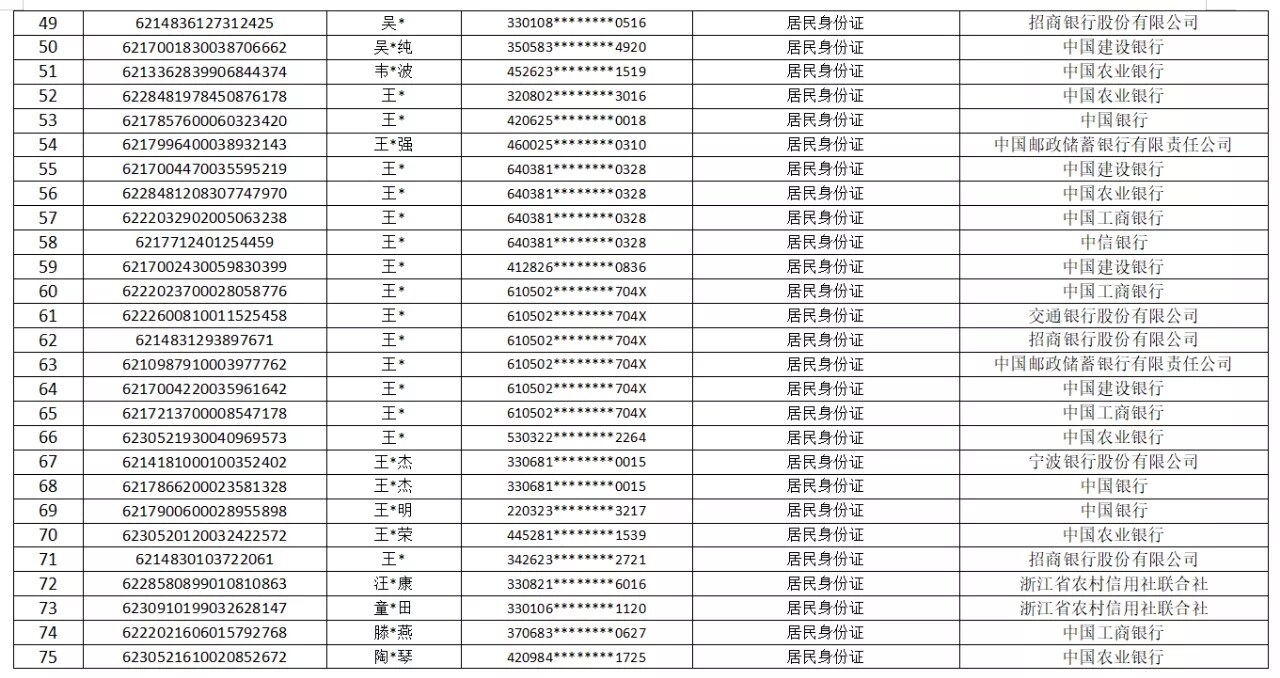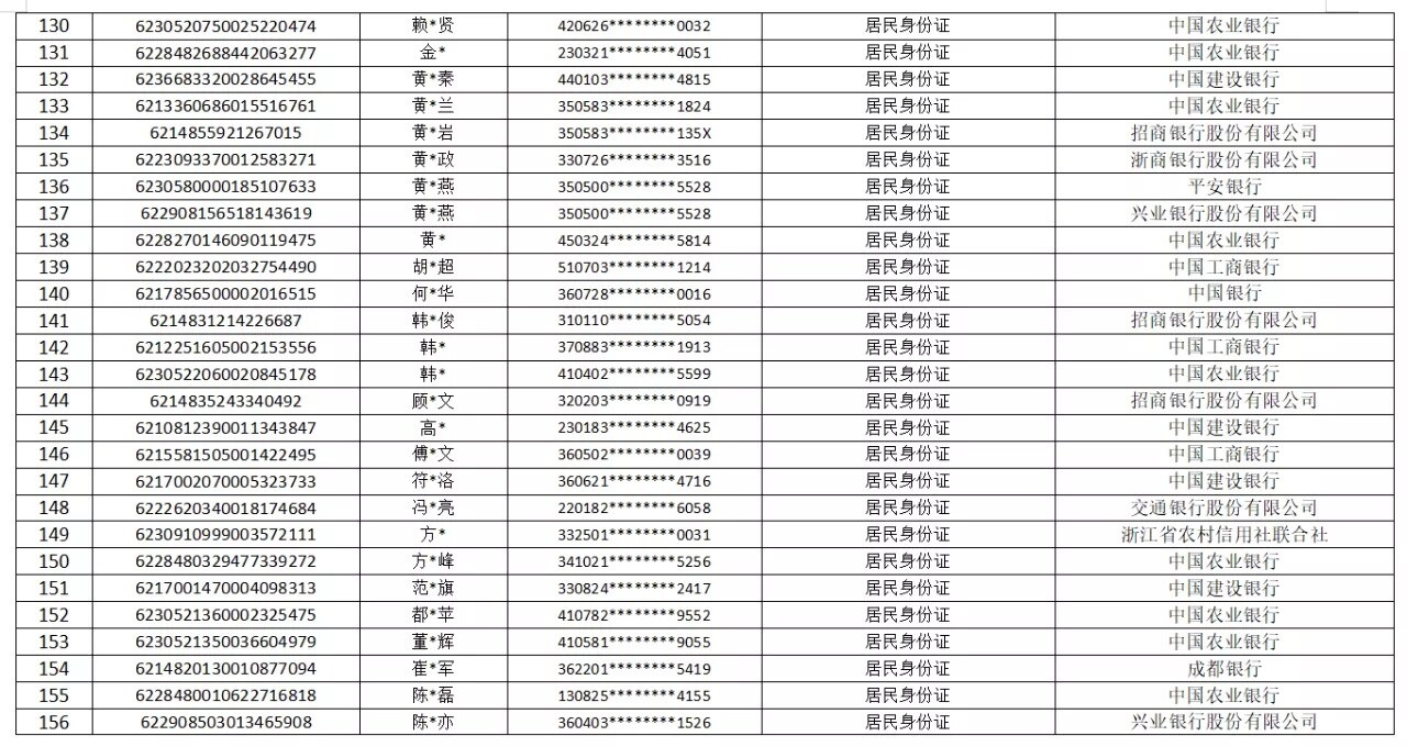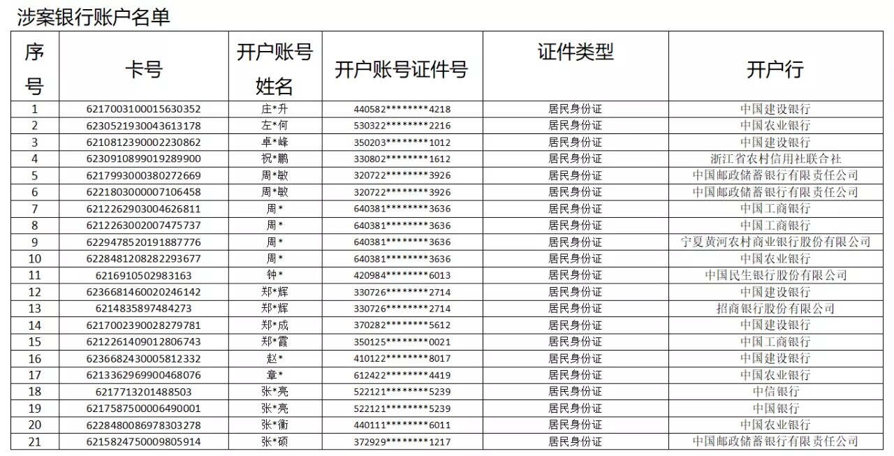 附件:涉案银行账户名单