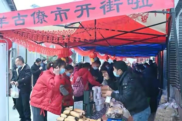 “羊古僚市”开街。安稳镇供图