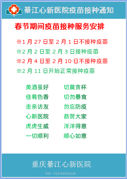 春节期间心新医院疫苗接种服务通知