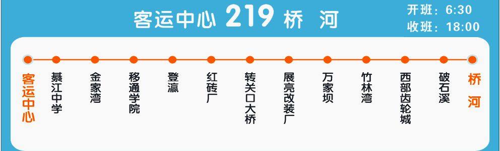 今天在客运中心等车,发现綦江又开通了219这条公交新线路。从公交车师傅那里了解到,219路公交是横跨转关口大桥,实现了客运中心到桥河工业园区的直接连通,使得往返桥河(工业园区)、通惠新城变得十分快捷。这个就必须实名点赞公交车公司了!