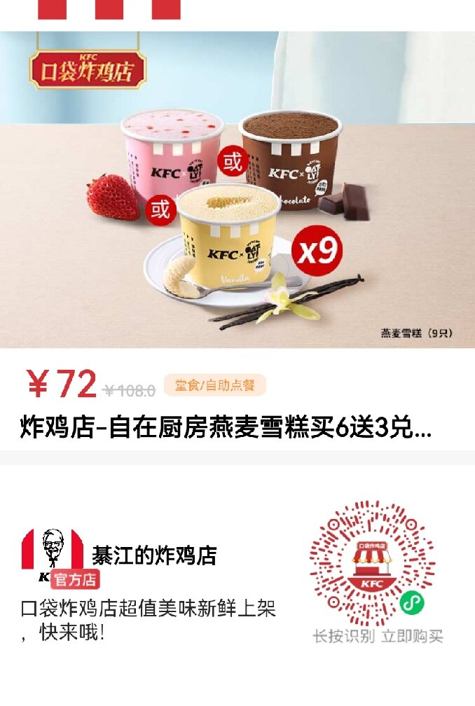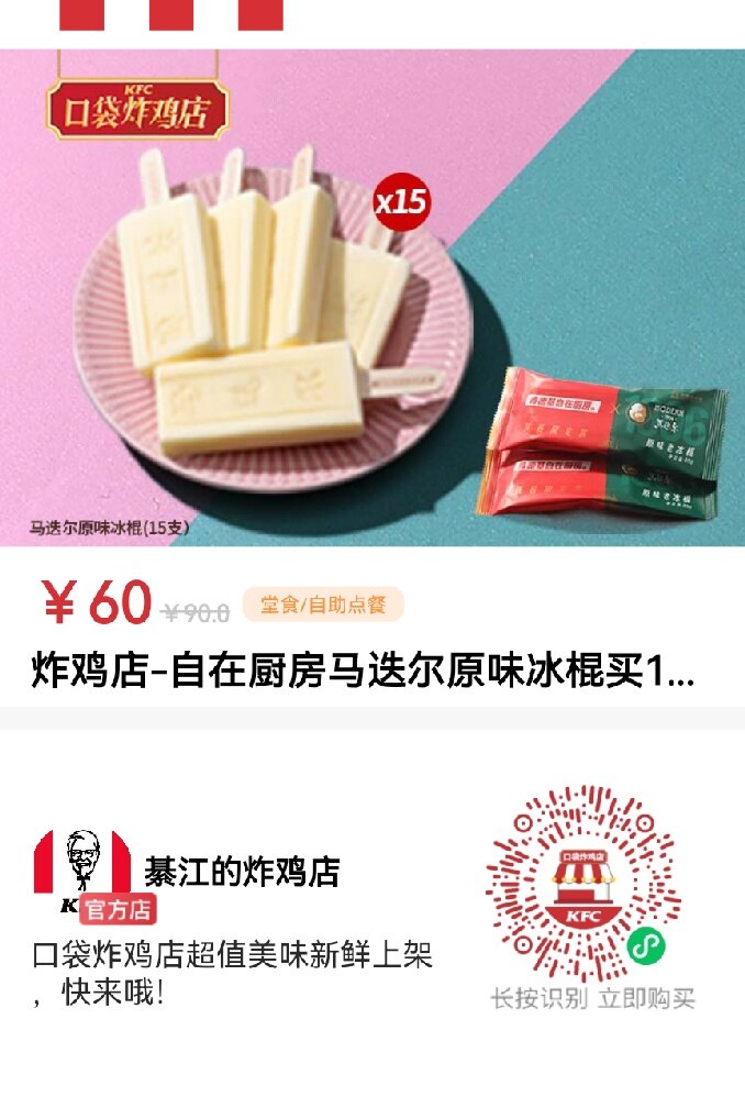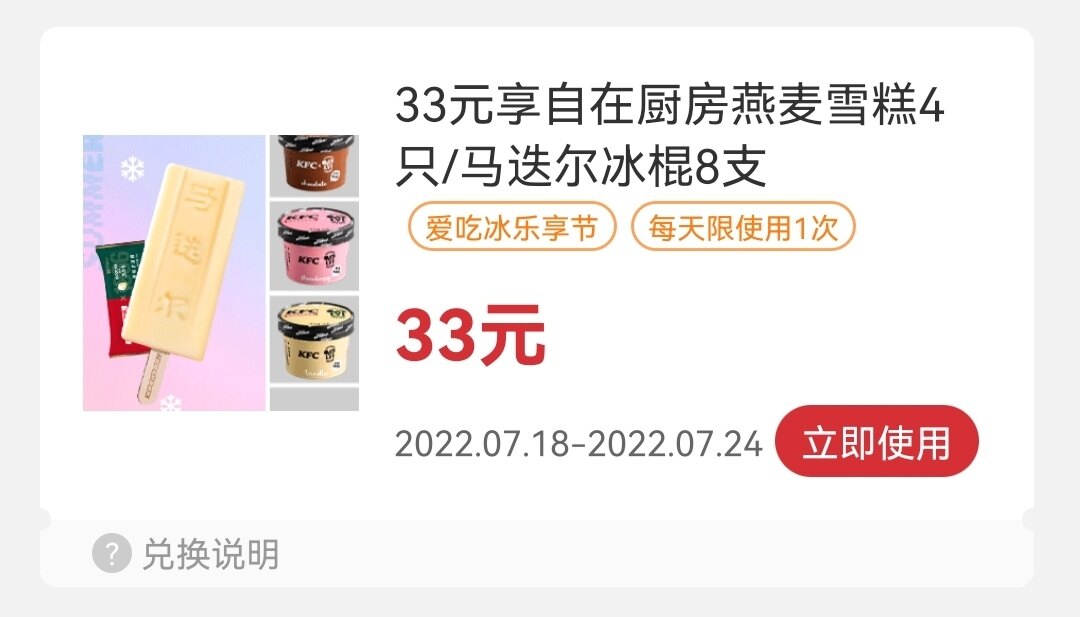 又有羊毛薅啦,肯德基炸鸡店,肯德基APP会员卡包,冰淇淋66折哦!有了它们的陪伴,再热的夏天都不怕啦!赶紧入手,放在冰箱,在家也能随时享受冰爽啦![色]