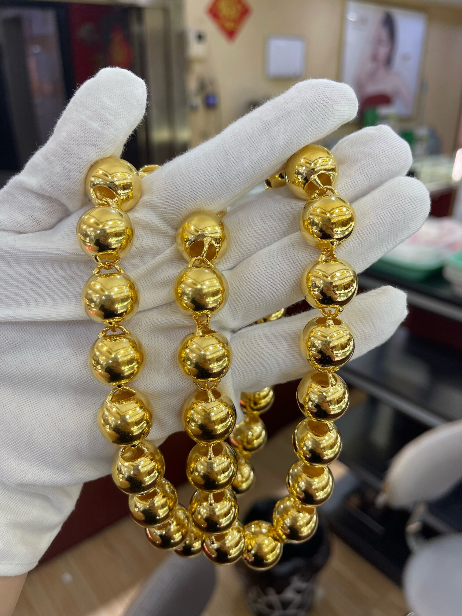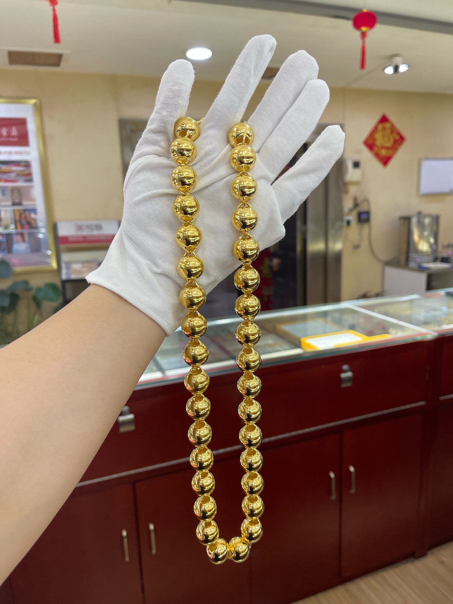 足金999.9:客订300克男士光珠项链