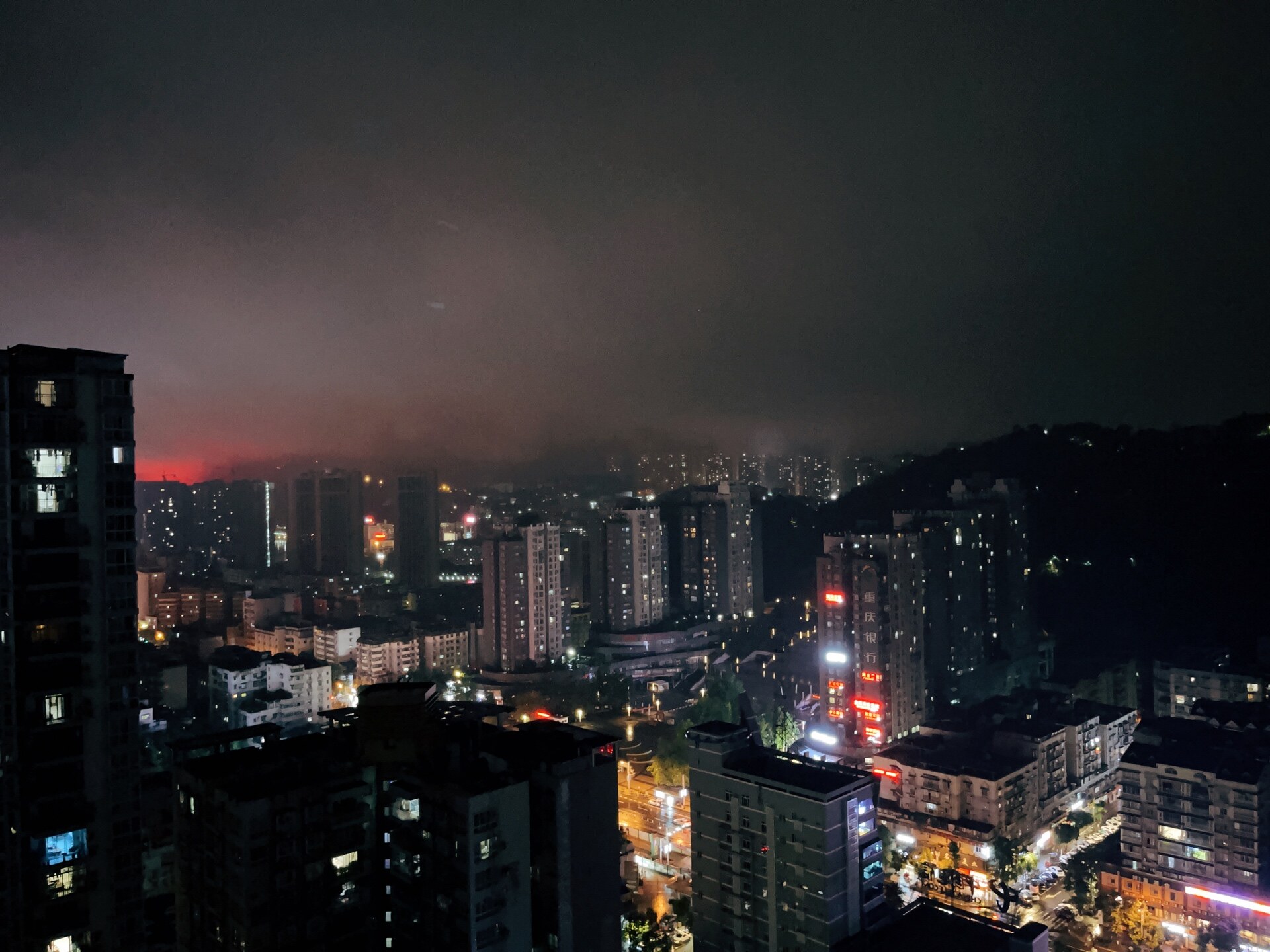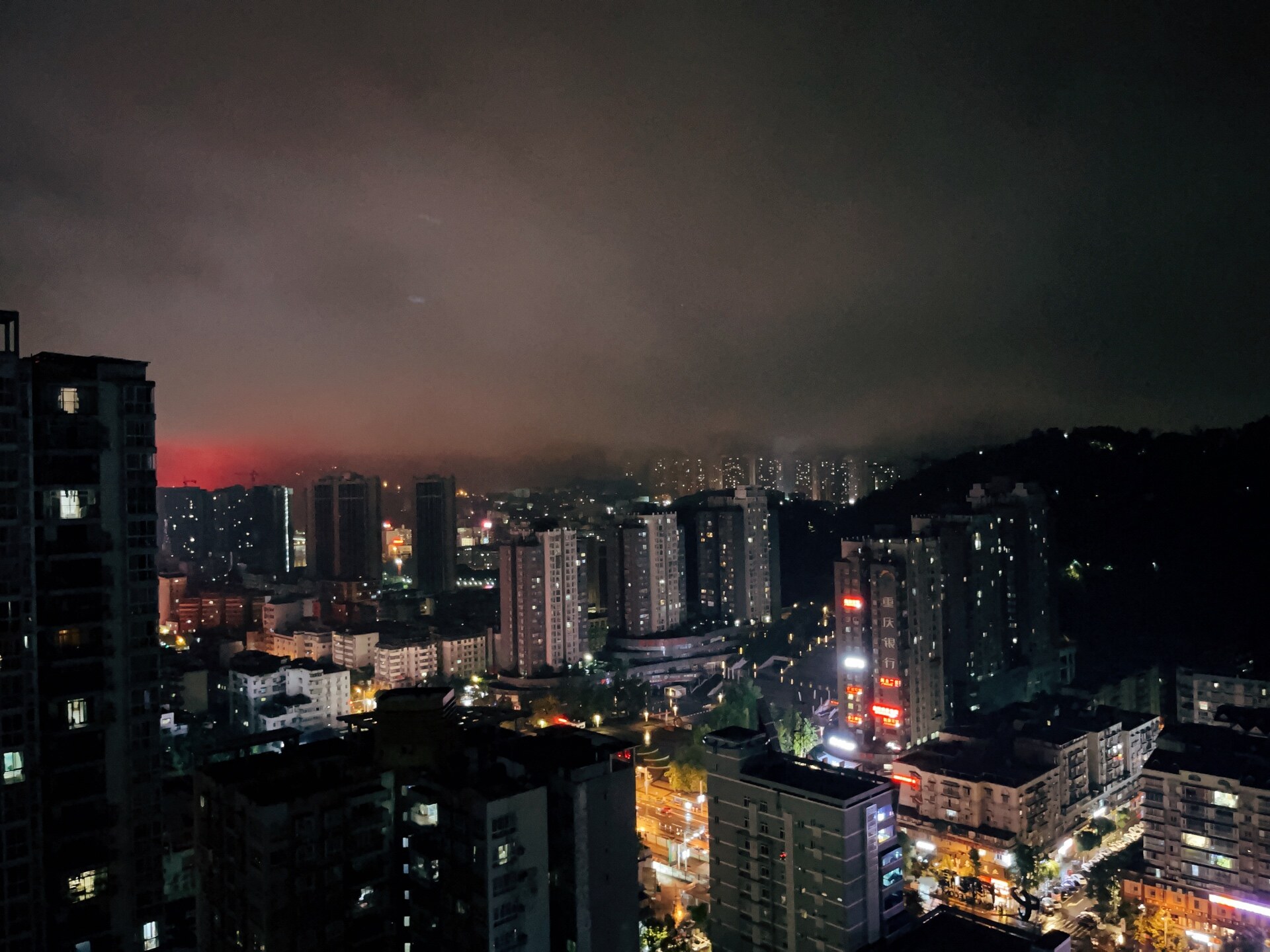 人民医院的灯光,我家在职高这边看的清清楚楚,光污染了属于。