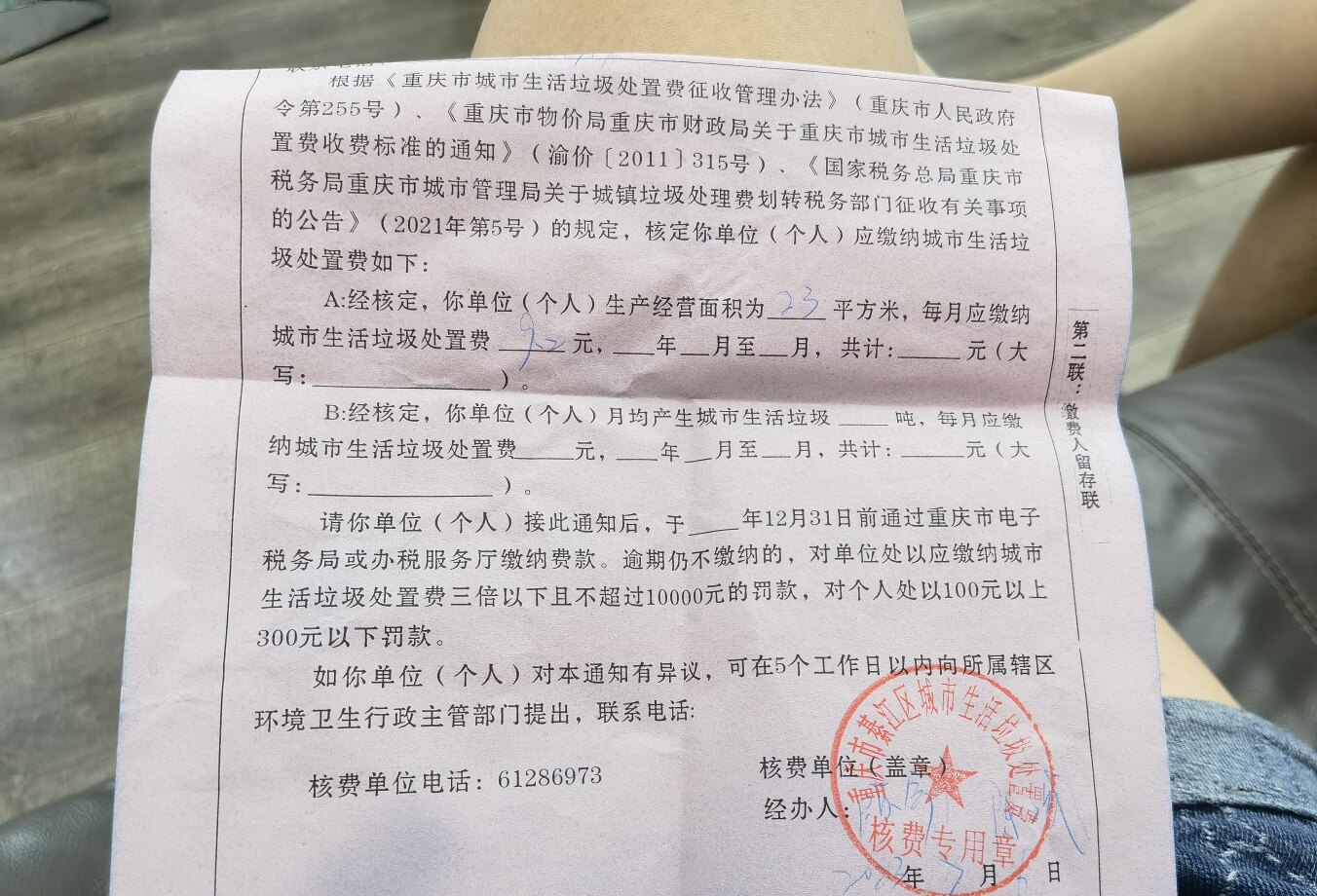 前几天店里也是来了几个人 说要量平方 后面按照这个来收垃圾处理费 没有让他进去 鬼得很