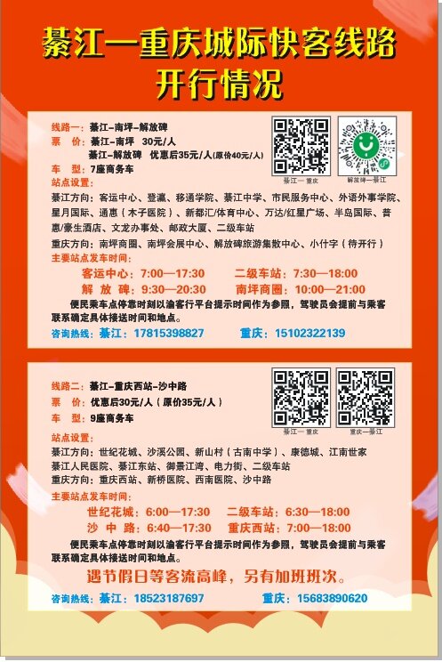 关于渝綦城际快巴服务