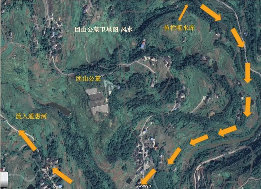 团山公墓南承玉带河蒸腾之瑞气,北连横山缭绕之祥云,云雨丰沛四季分明,峰峦叠翠河流纵横,四面环山相连,明堂开阔,层层叠叠,环绕四周。国内久负盛名的风水大师们前来采风观光,无一不交口称赞,认为此地是“灵山佑百世,福地旺千秋”之风水宝地。