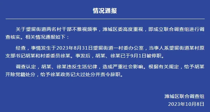持续关注:山东潍坊潍城区不雅视频事件?