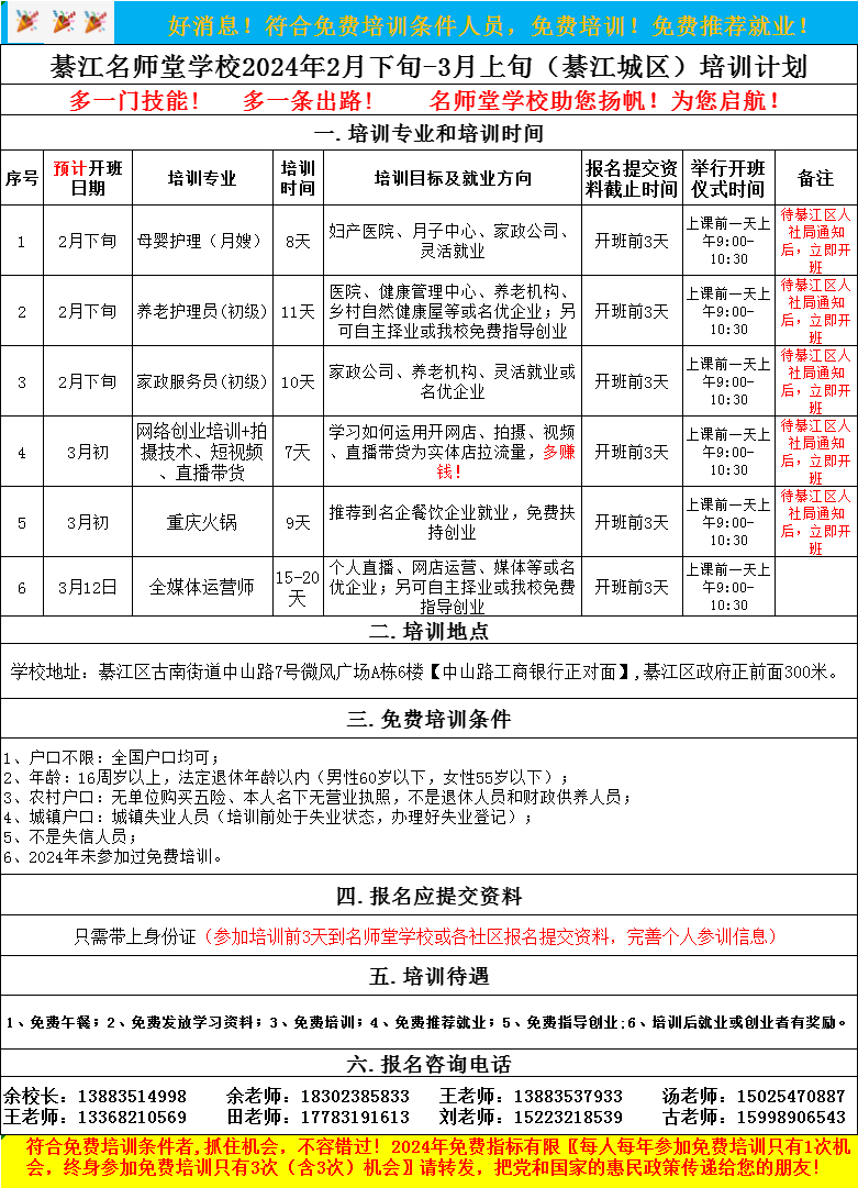 还没有了解及参加免费培训的朋友,我们课程要开始啦!快来看看有没有你中意的呀?