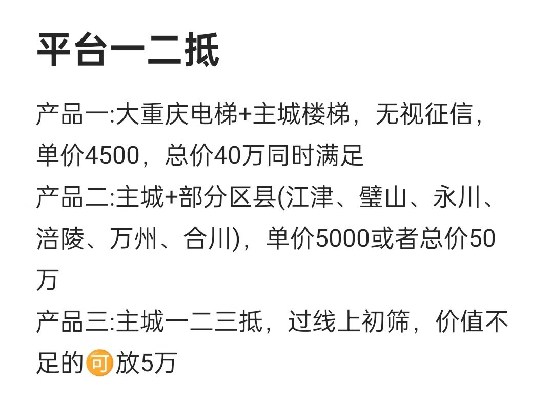 平台资金一二抵,无视征信