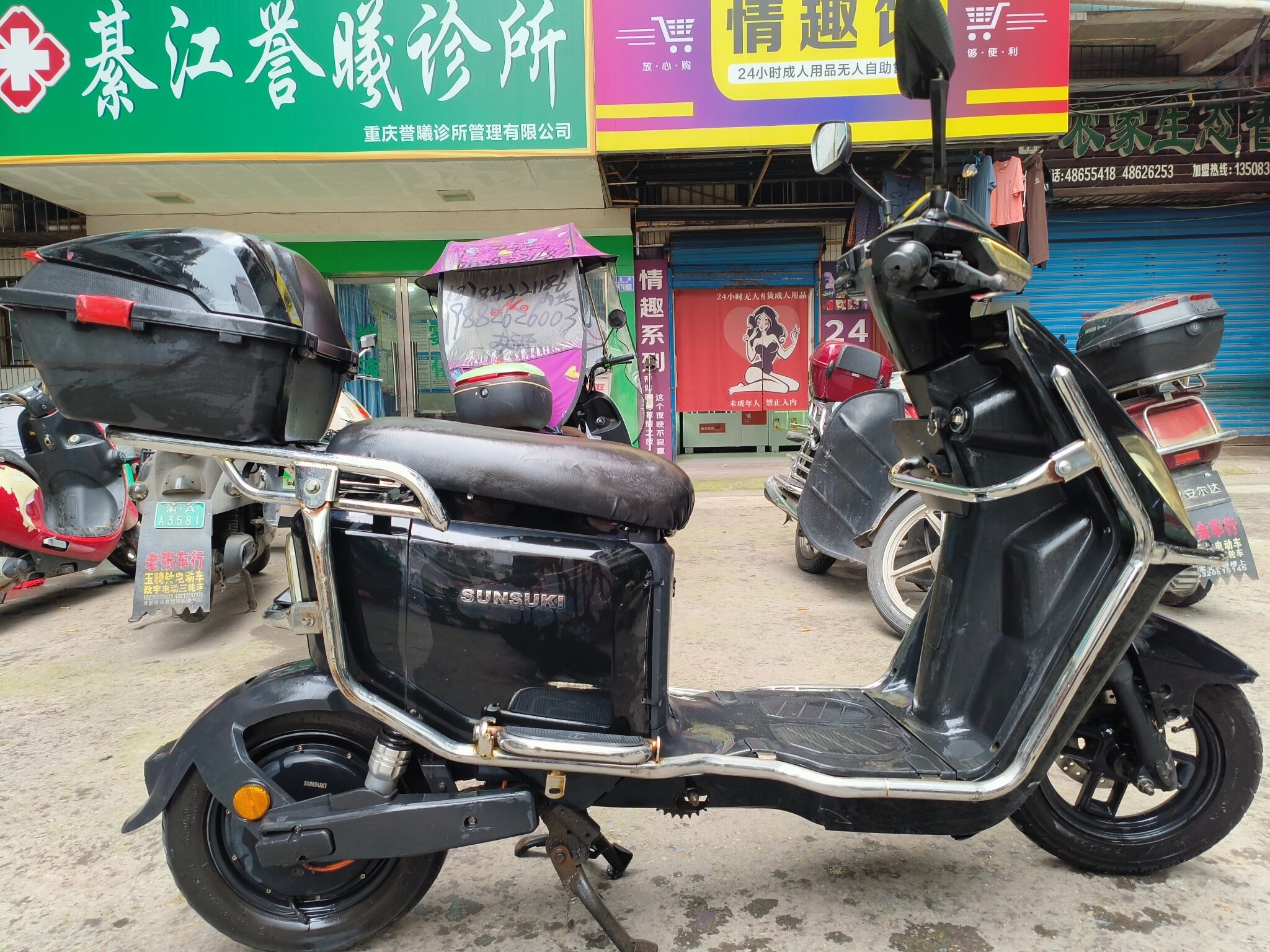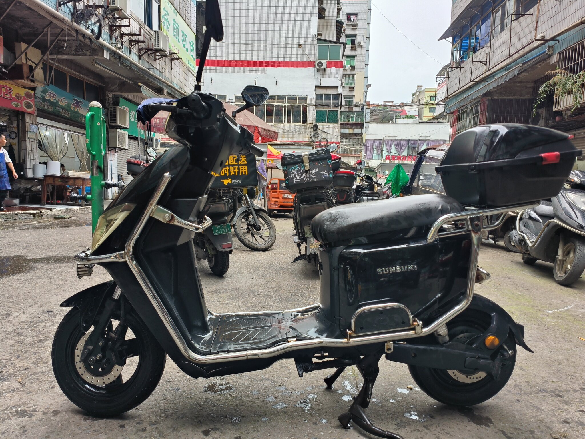 sunsuki森迪阳光铃木新国标电动自行车,上下班代步车,外卖车架,外卖小哥都懂这个品牌车,72V,前后碟刹,动力强劲。是新国标无需驾照。是上下班代步或者跑外卖最优选择。如果是外卖小哥用车,光要车架子750。我有一组72伏去年的电池,跑五六十公里,如果需要电池的话加400元。看清楚再联系。看车在重庆市綦江区。高价就是一口价,讲价拉黑。留言听不到。需要直接打电话。15564661558