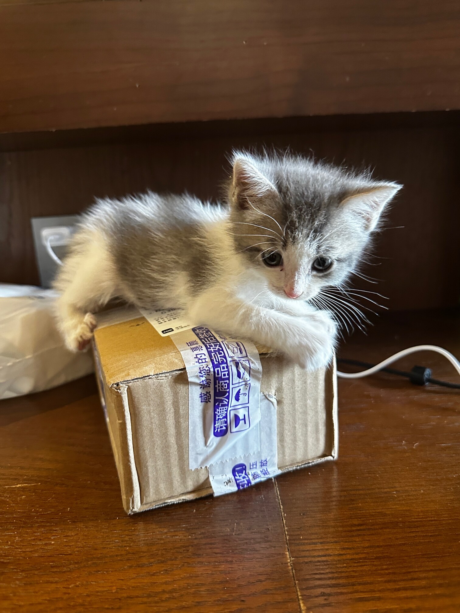蓝白串串,目测2个月大,可爱得很,工作原因没有时间照顾它,愿有爱心的好心人领养,对它不离弃,地址綦江高庙,