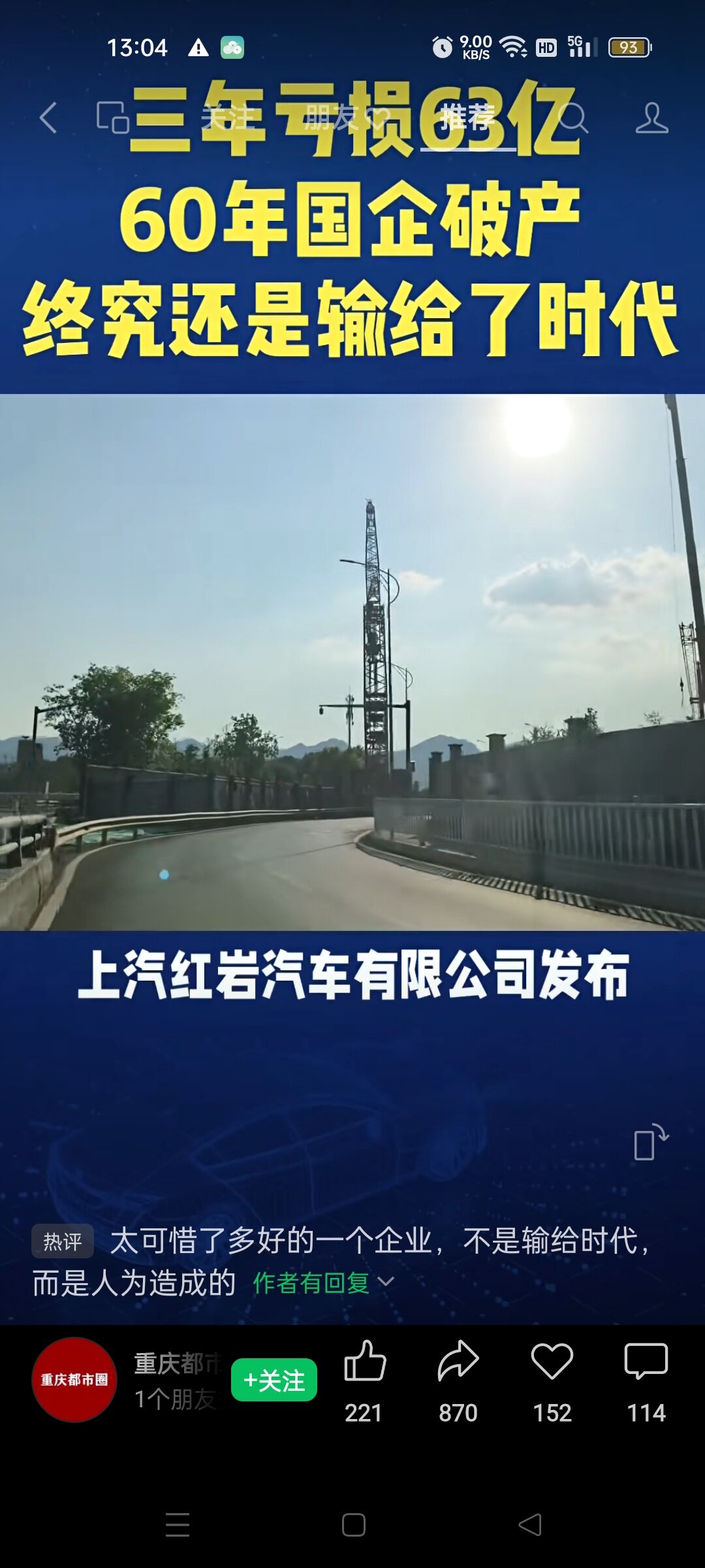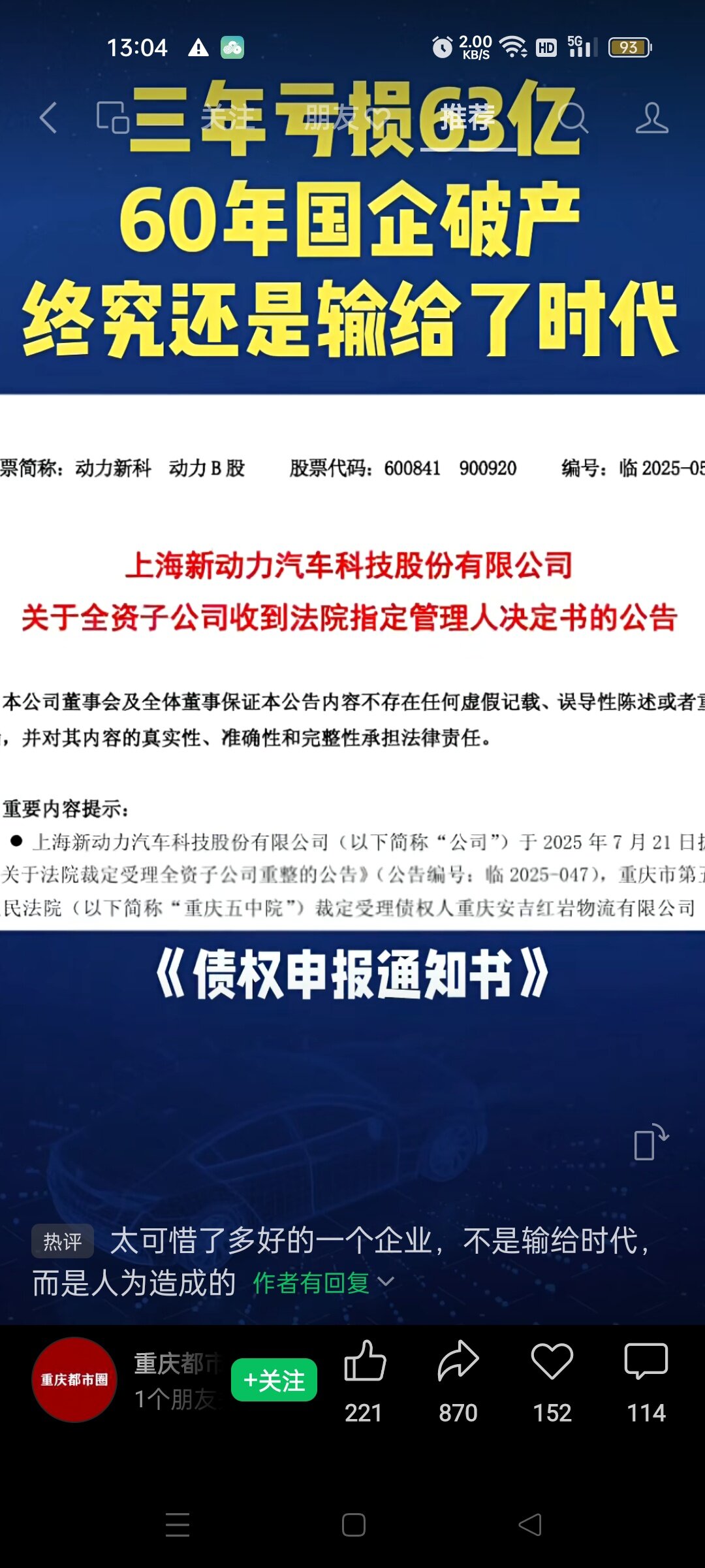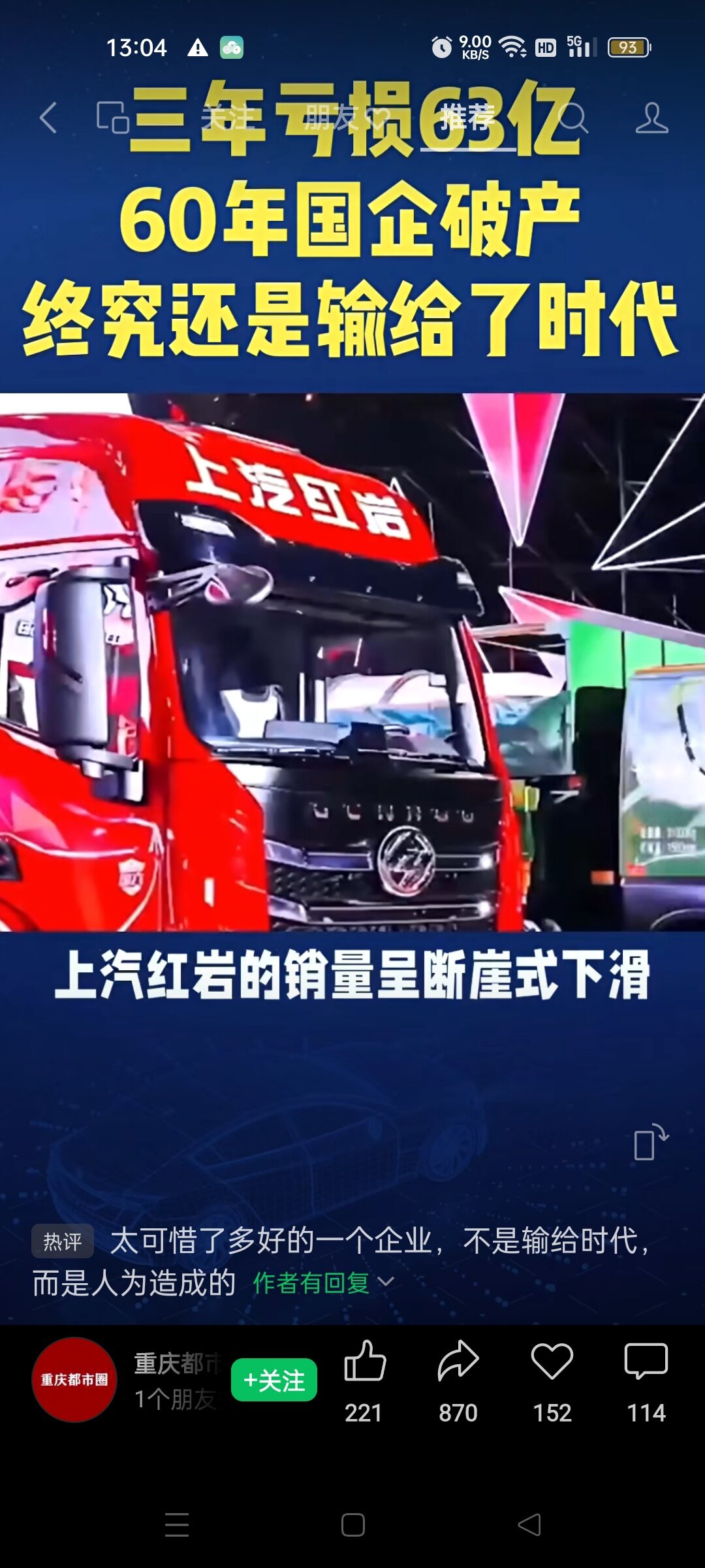 上汽红岩汽车破产重组