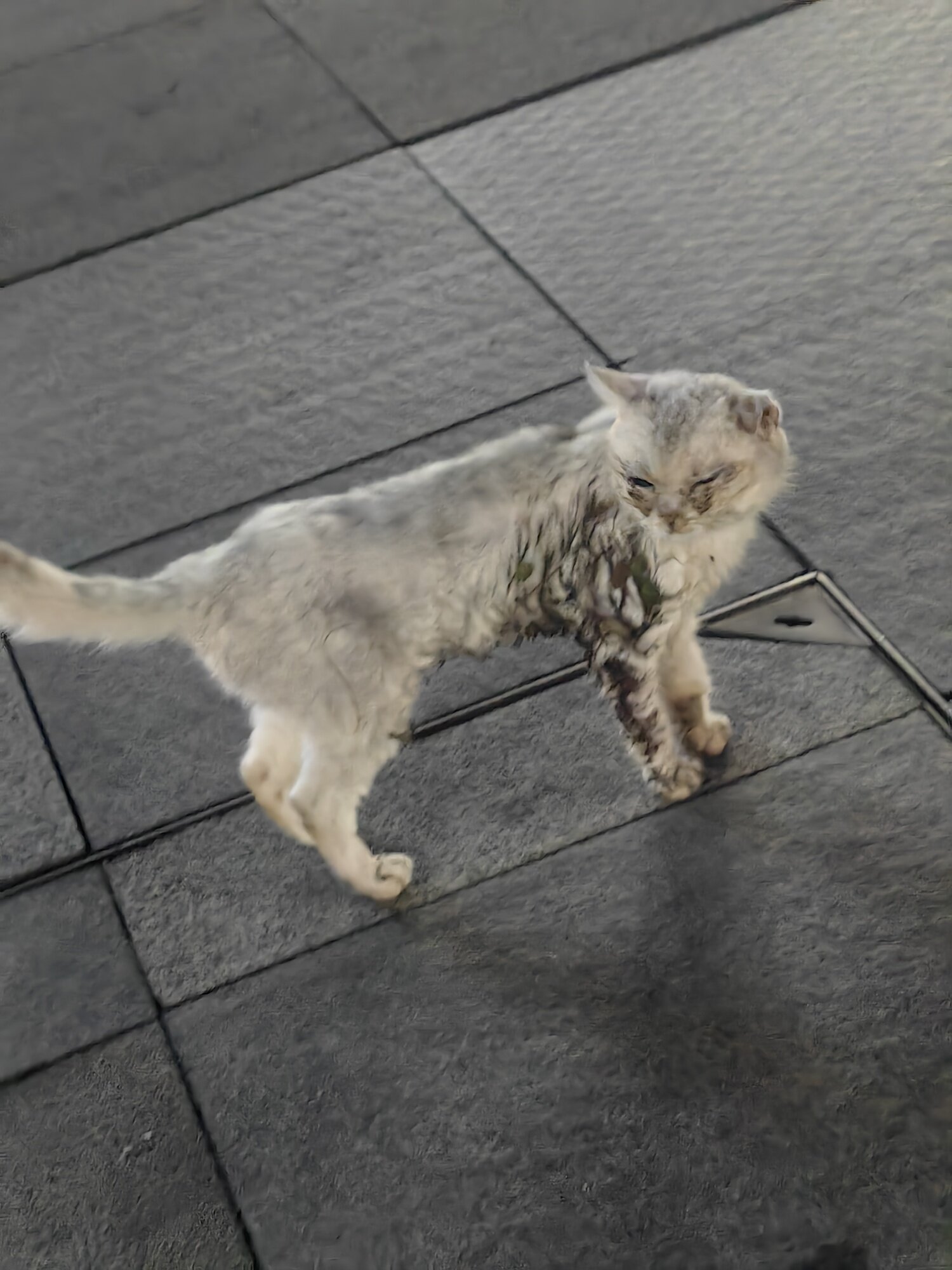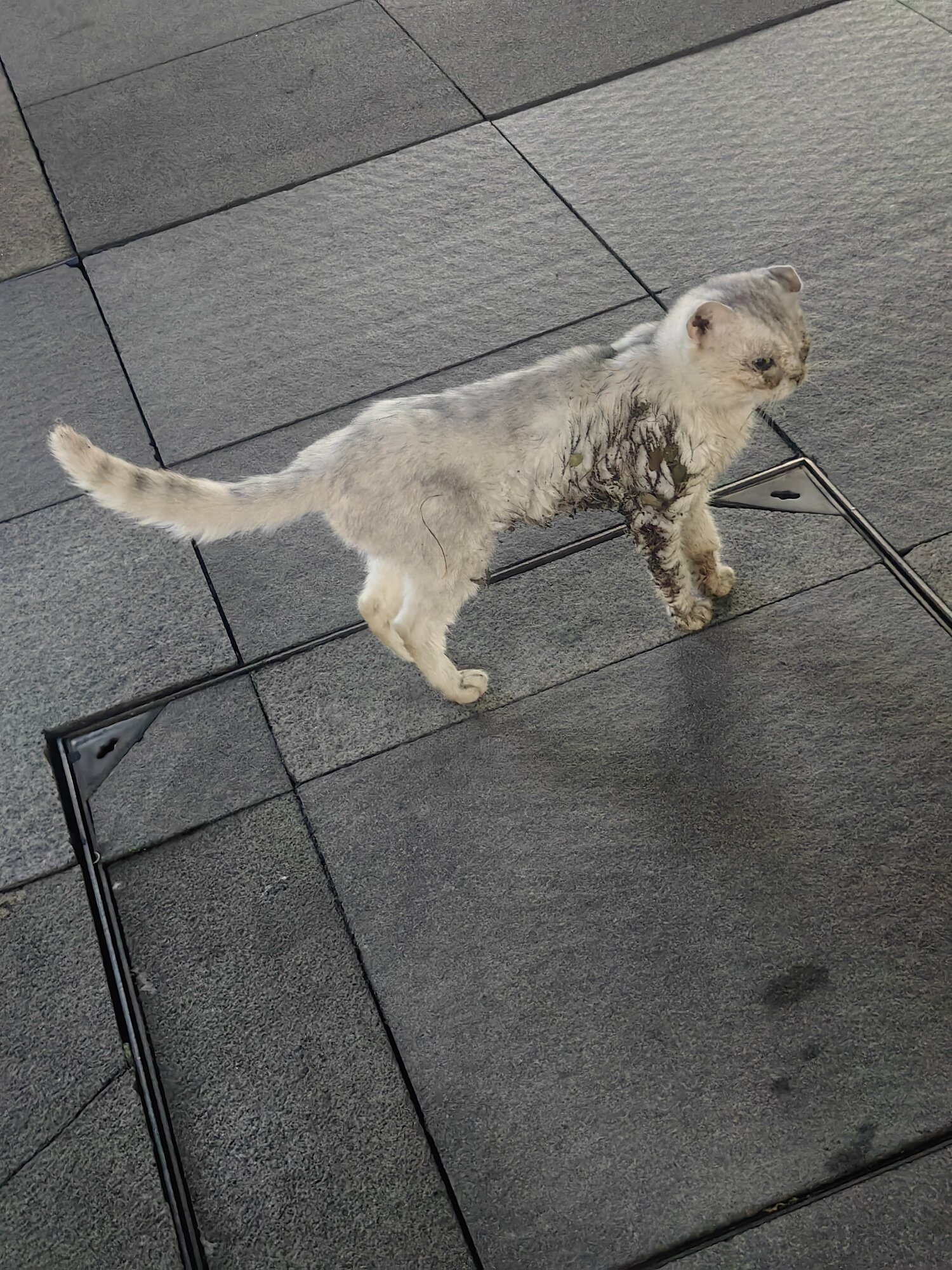 在红星这边 小猫不怕人 叫它它也停下 一只猫走起可可怜怜的 希望它不是被抛弃而是走丢的