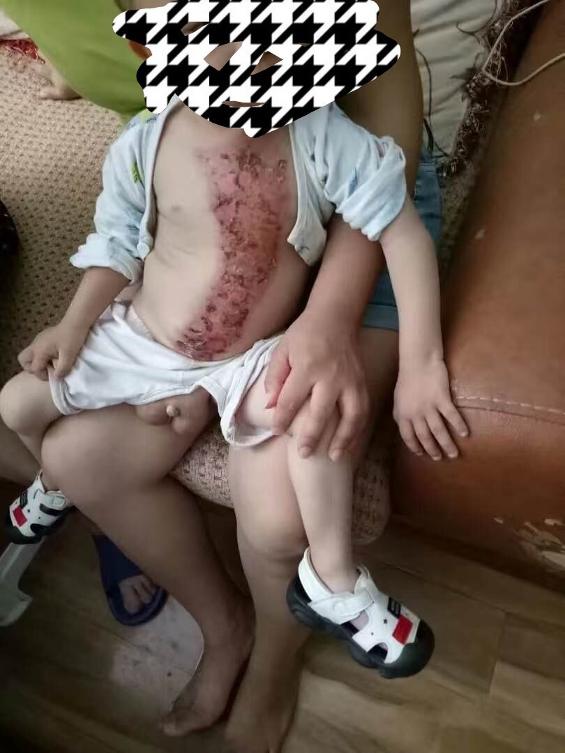 晚了,刚开始的时候他这种情况最少凉水,自来水冲半个小时以上