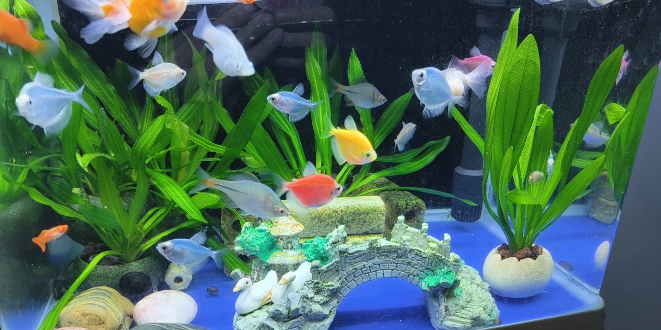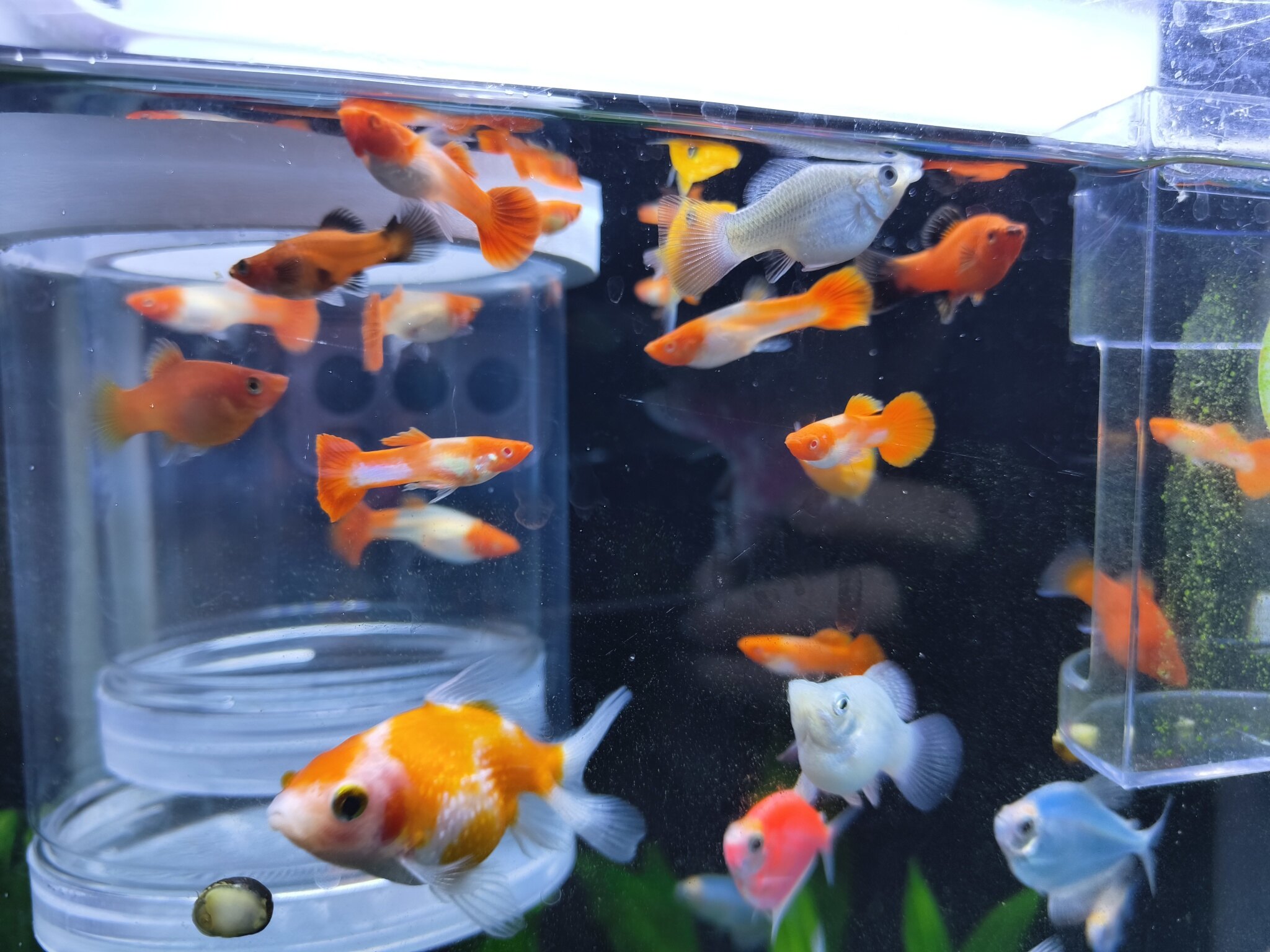 一百出鱼缸全套,还有二十几条孔雀鱼,要的自提