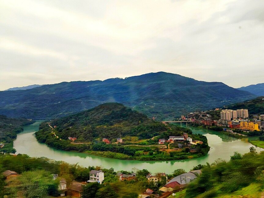 看綦河漂着的树叶载着夕阳