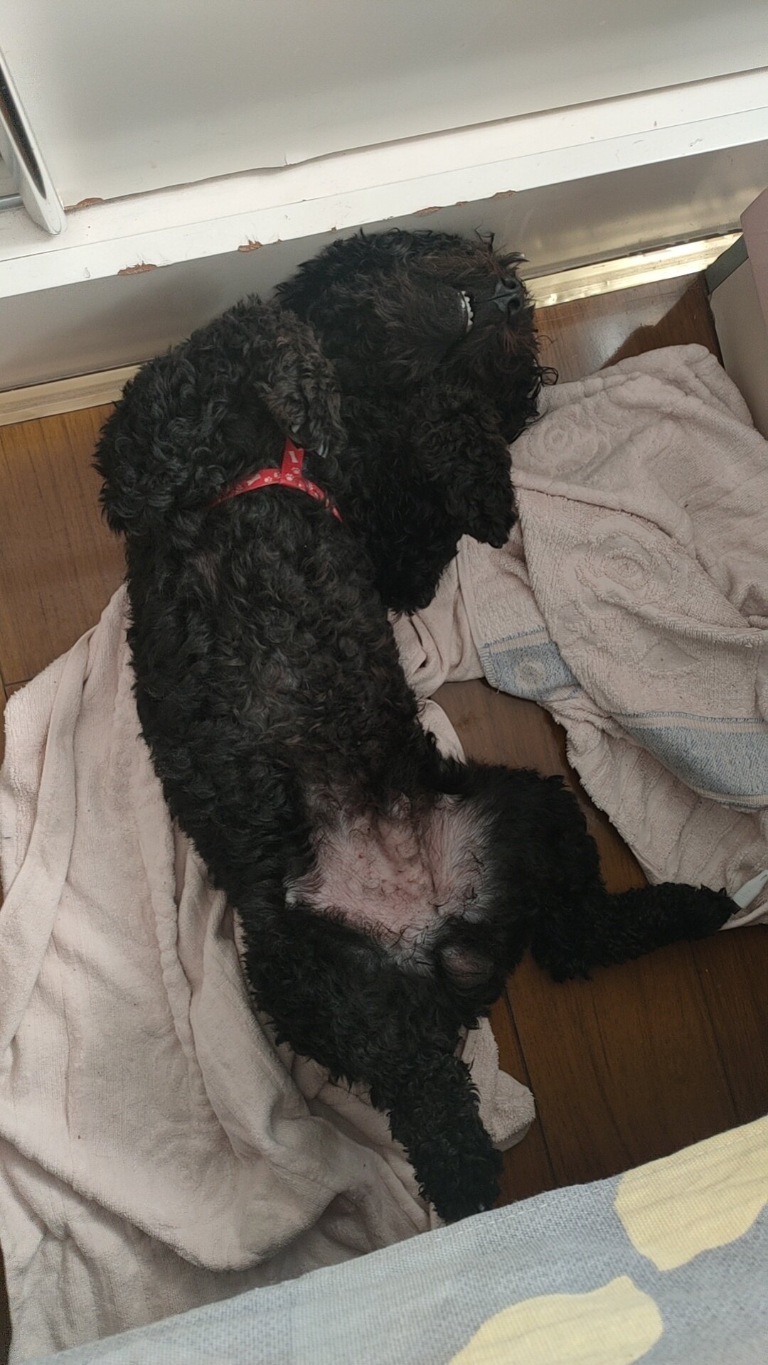 寻找黑色公泰迪,背上有少许白毛毛,脖子上有红绳,