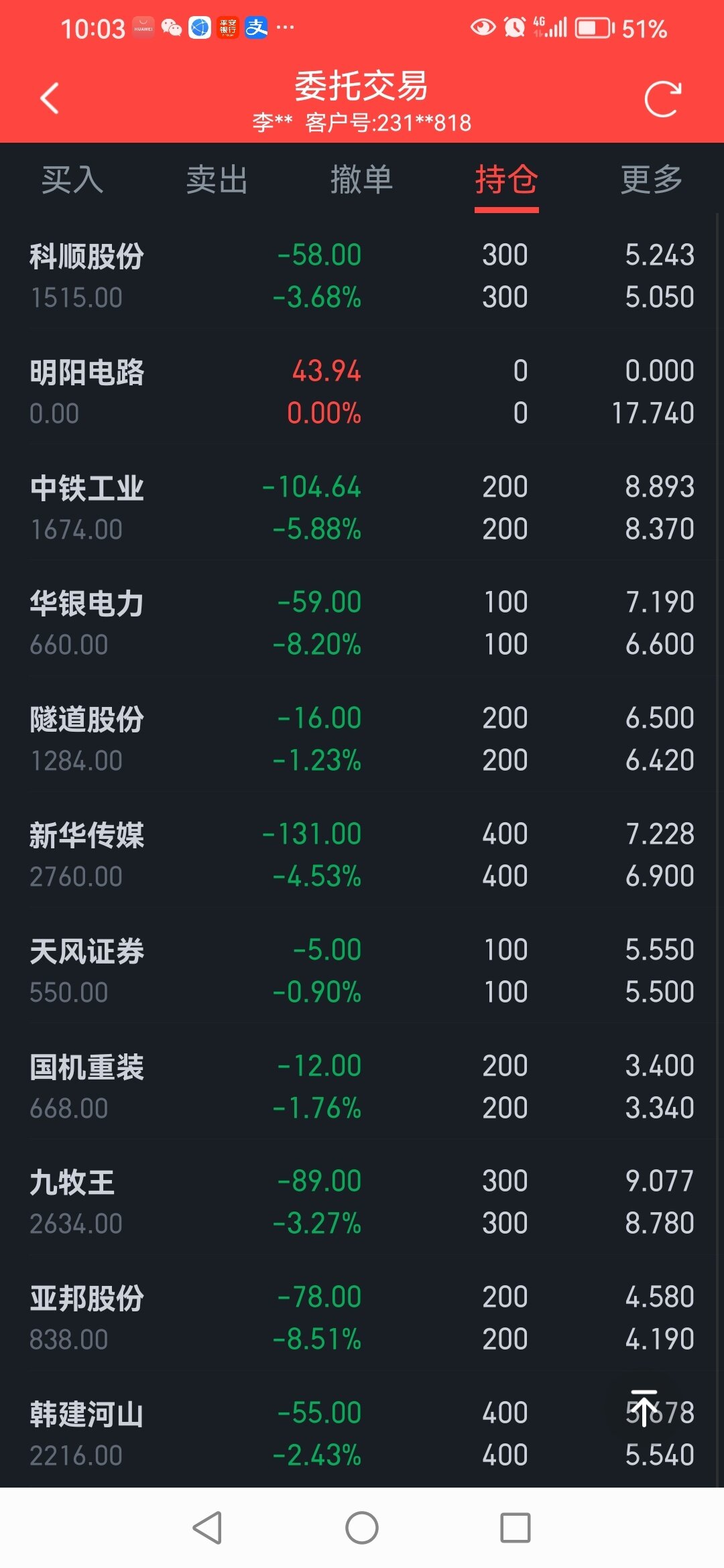 牛市亏钱的多,一只票亏十来个点正常。去前年我的票亏四十几个点的都慢慢做回本跑的还小赚手续费,今年牛市来了反而不敢去后来忍不住进去就被套。