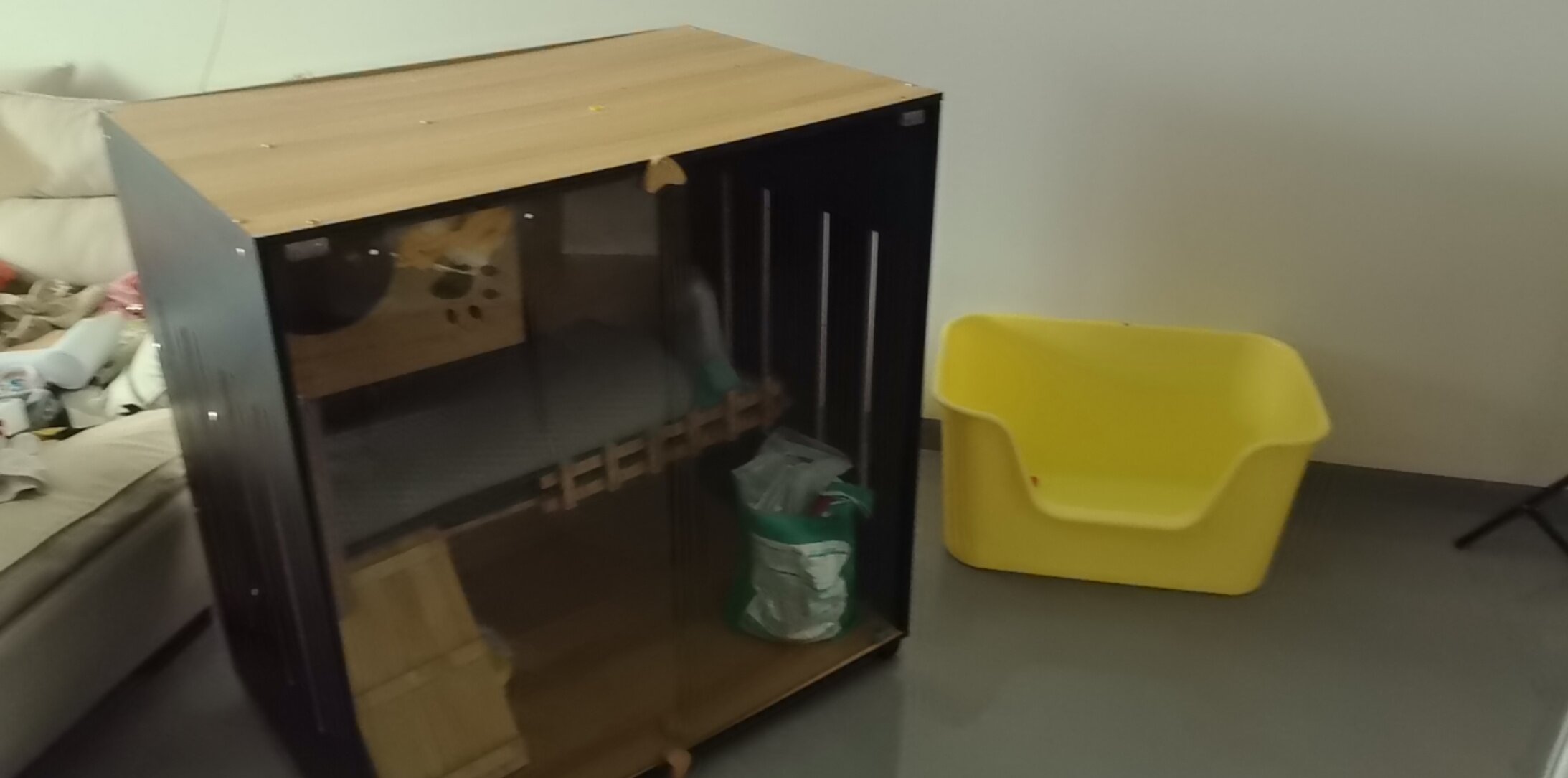 买的新的。由于猫跑不见了。
