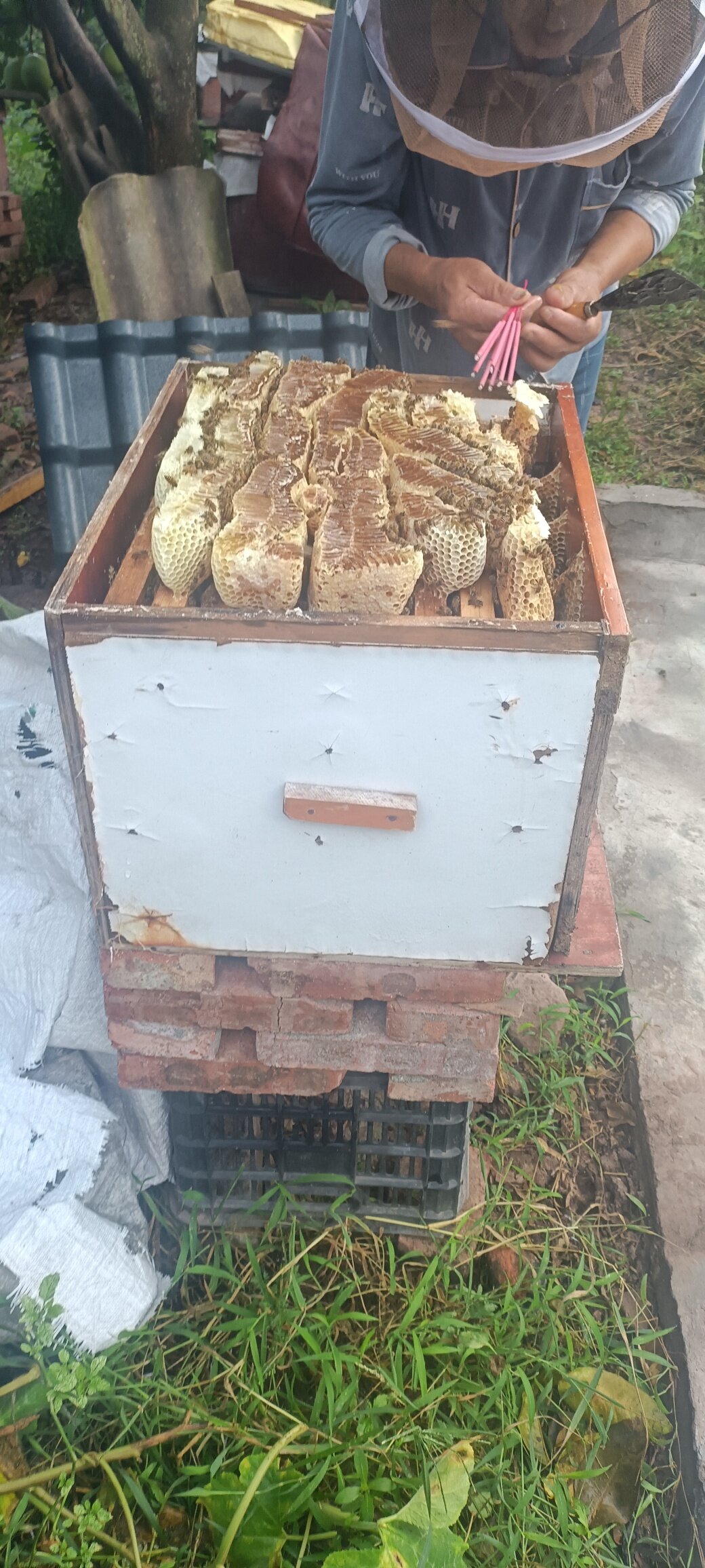 虽然只养了两桶蜂 还是要搞点来吃 还没开始吃自己手就长胖了