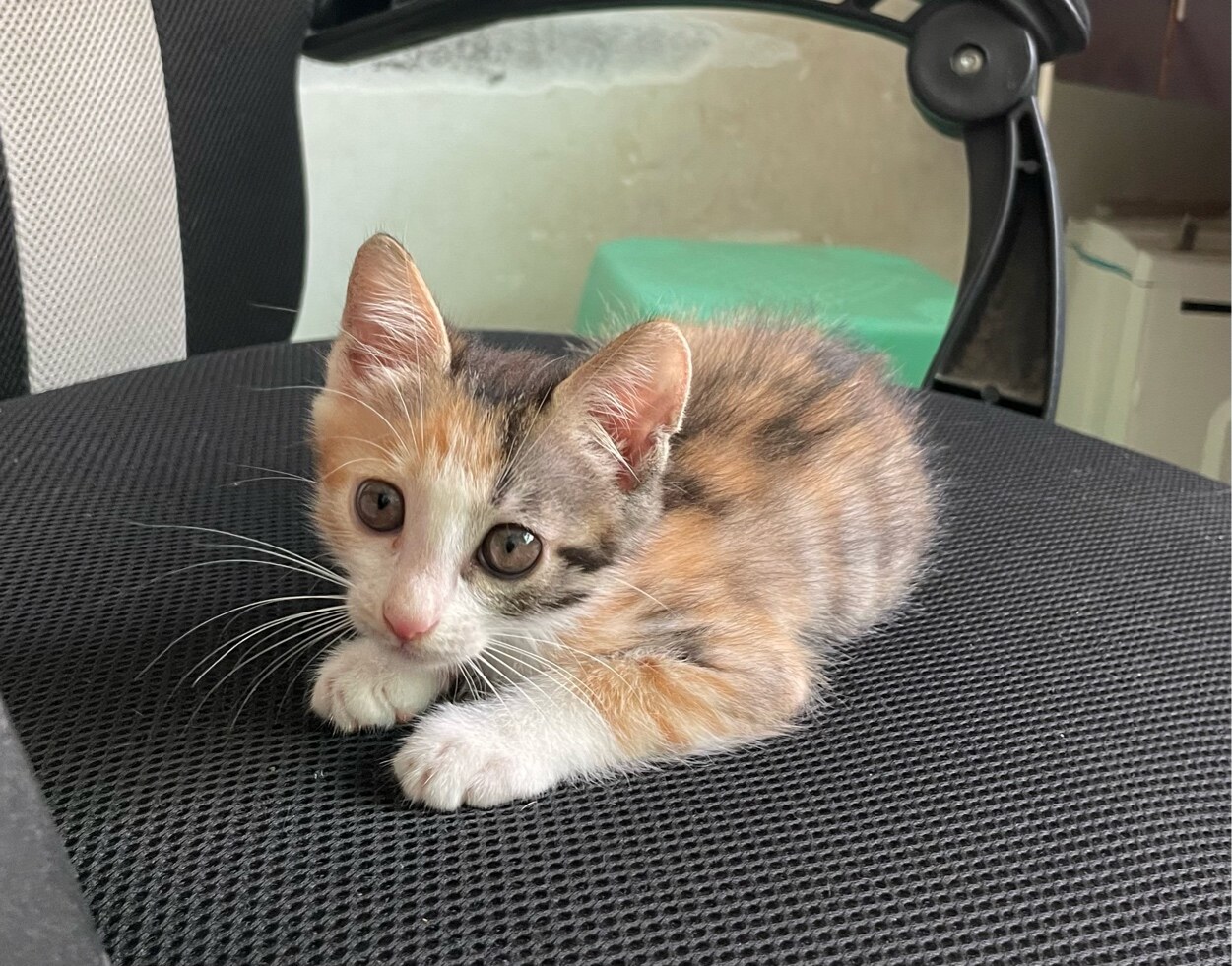 小三花领养,2个月,会单独用猫砂吃猫粮