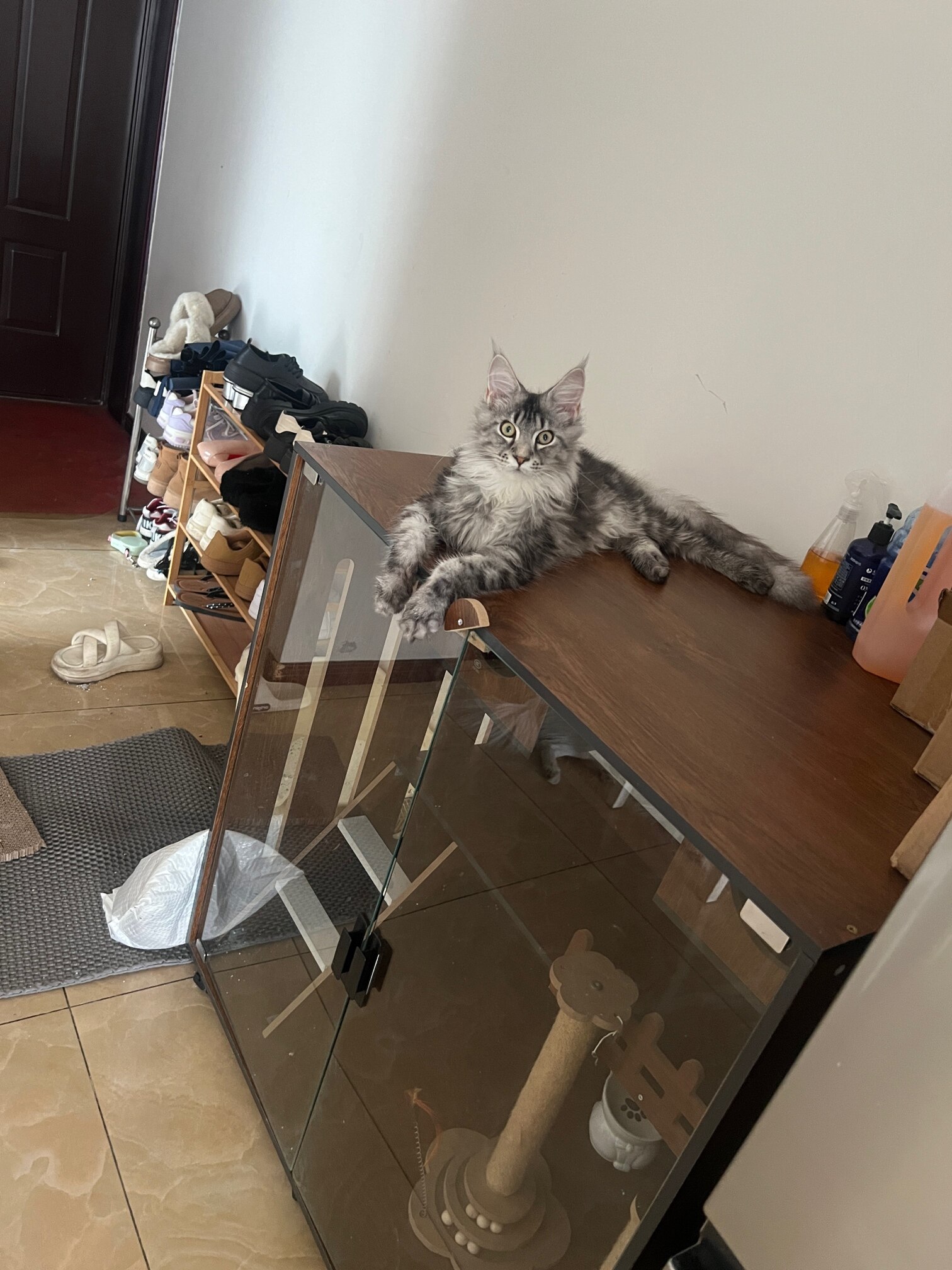 猫猫特征:银虎斑缅因弟弟 名字叫哆哆 很亲人 很粘人 不怕人 但有点胆小 容易应激