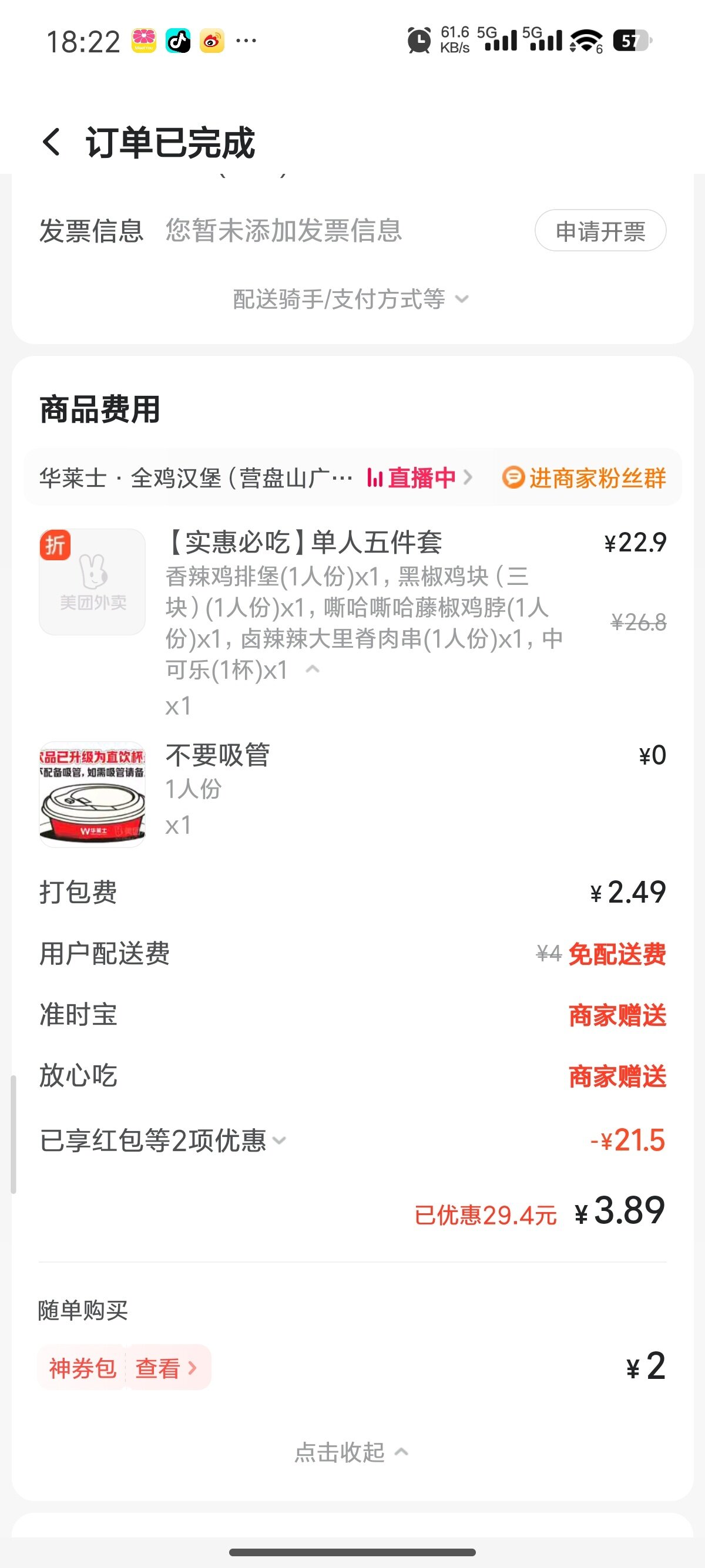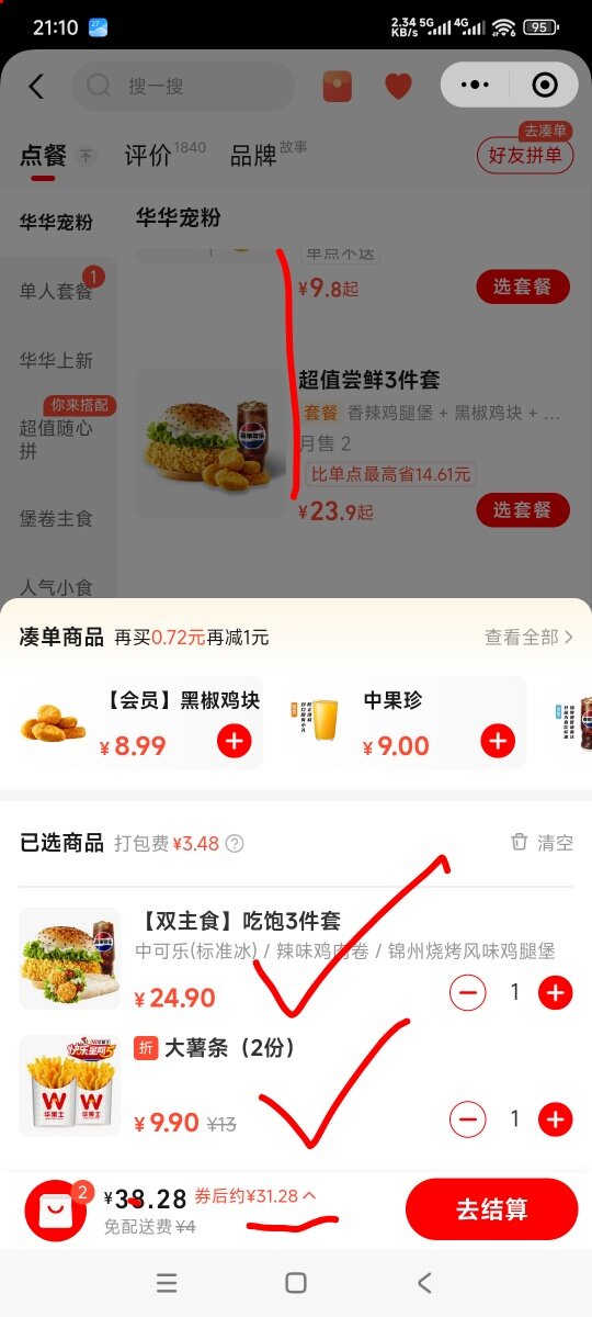 你这个套餐好贵啊,平时我点华莱士或者是享多味才五六块。
