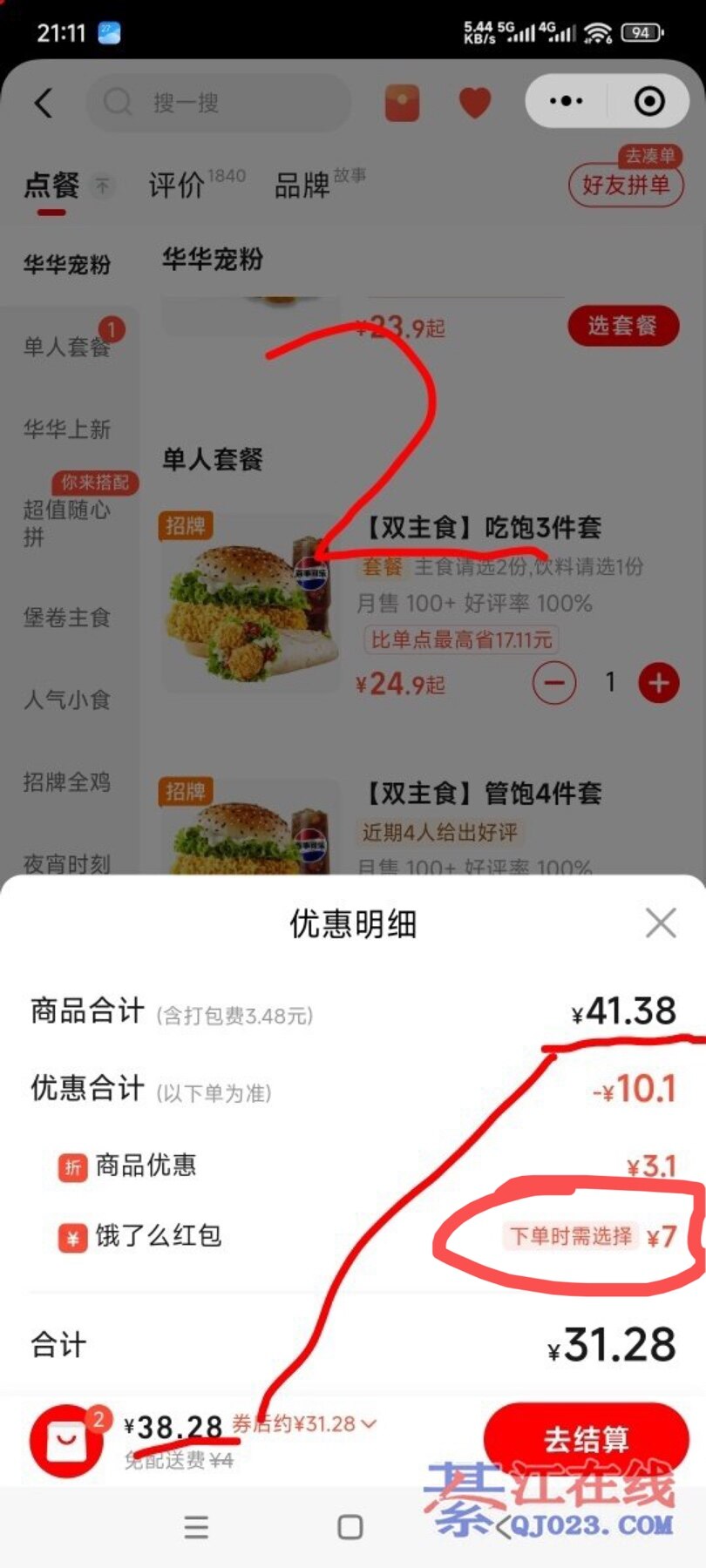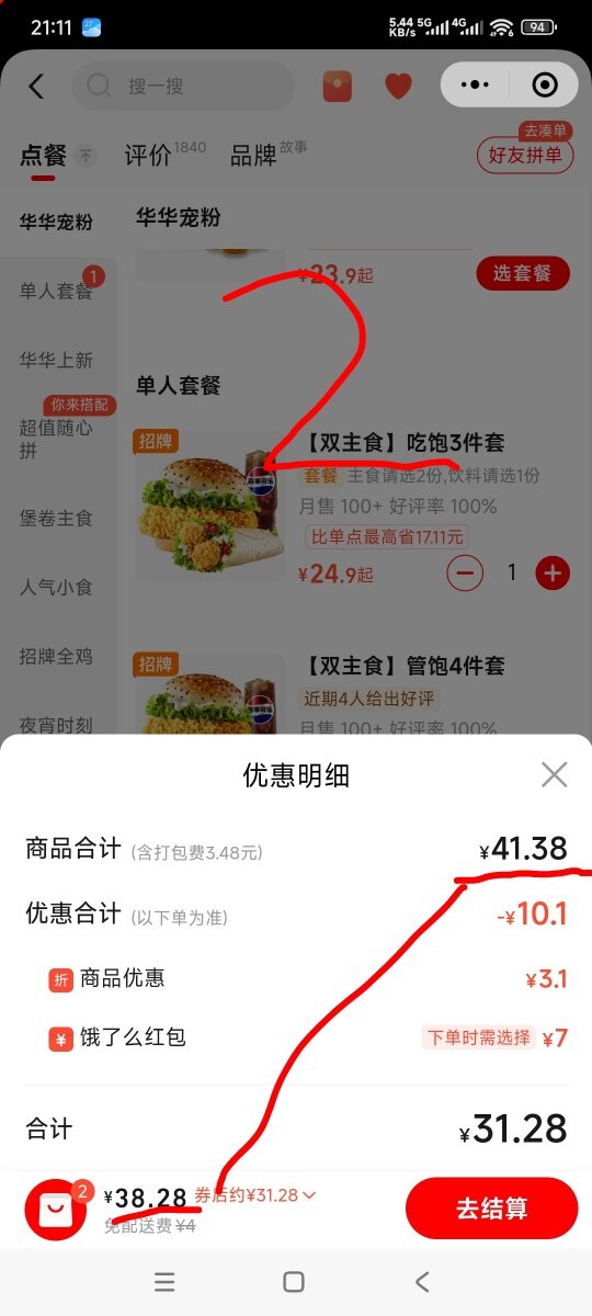 哥子,你没点结算,点结算进去有7块钱的红包可以用