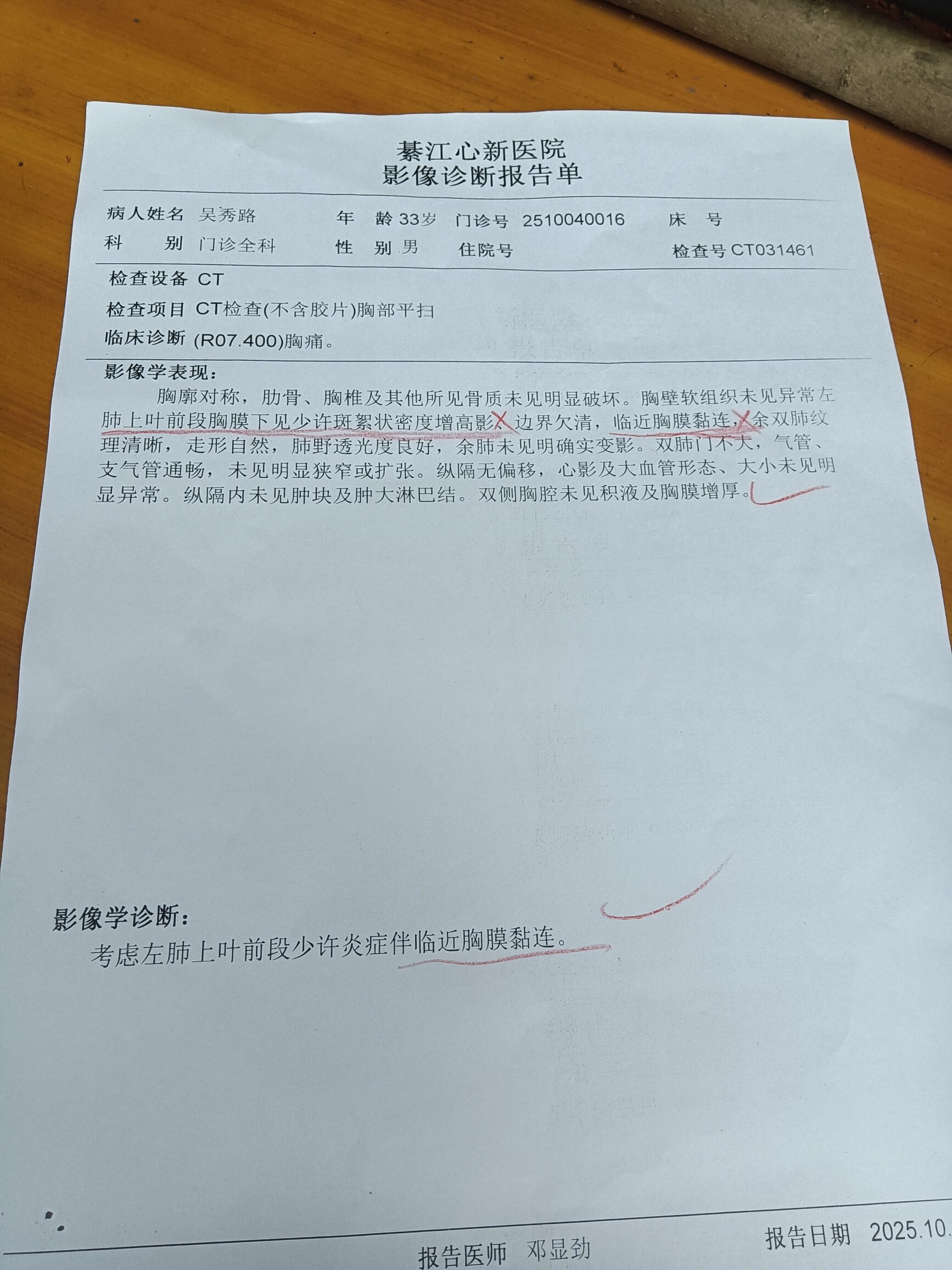 有是肺炎,今天住了64排CT239元,自费