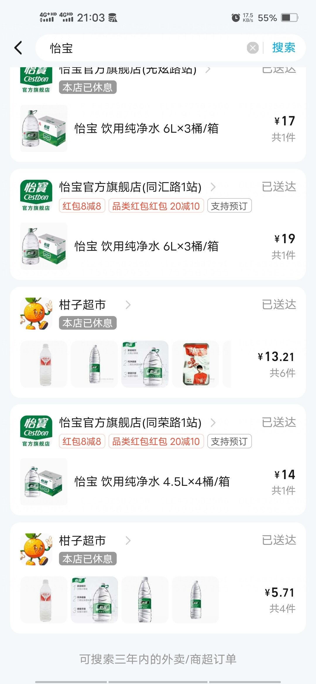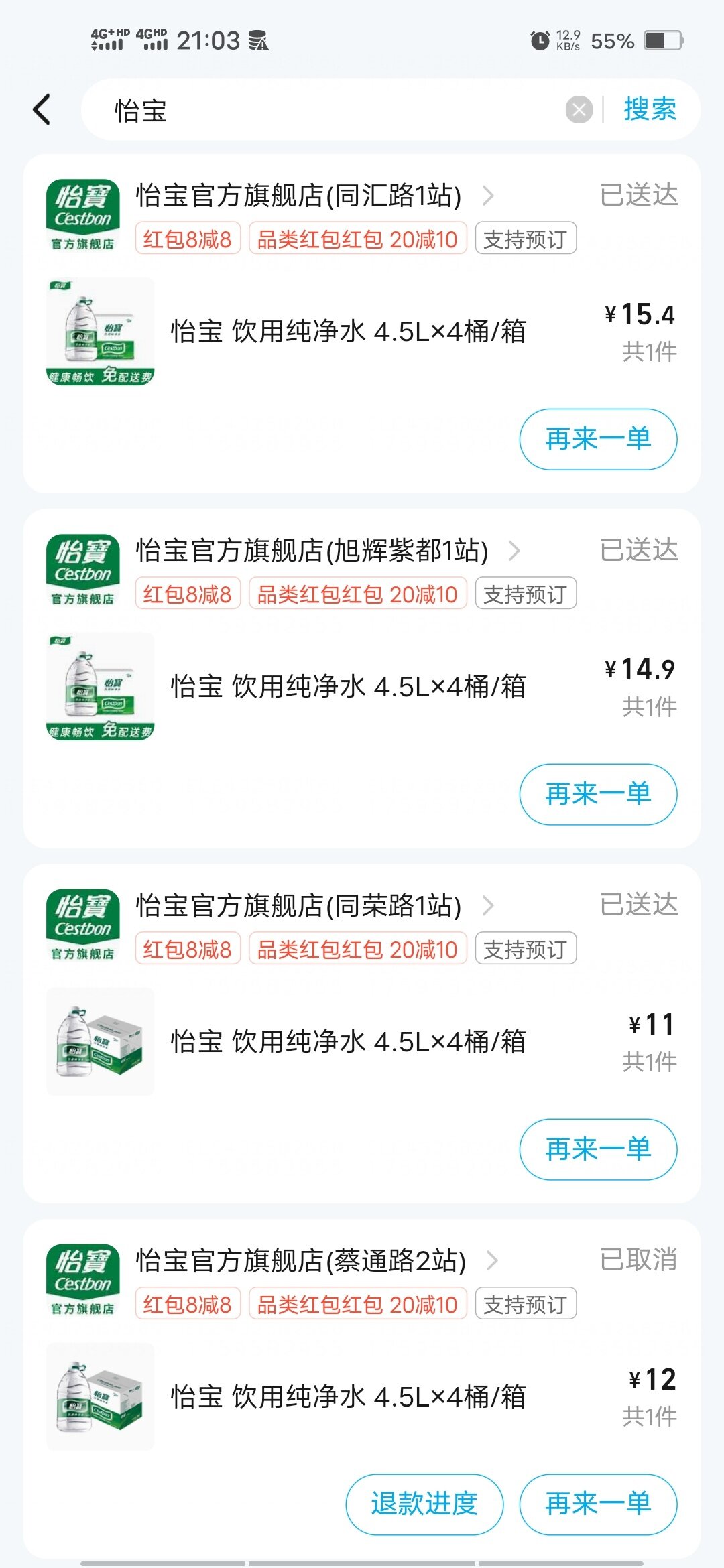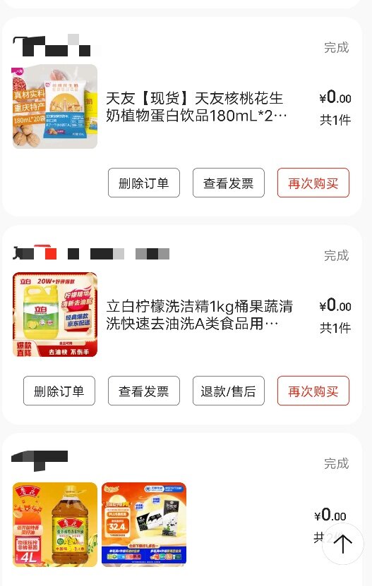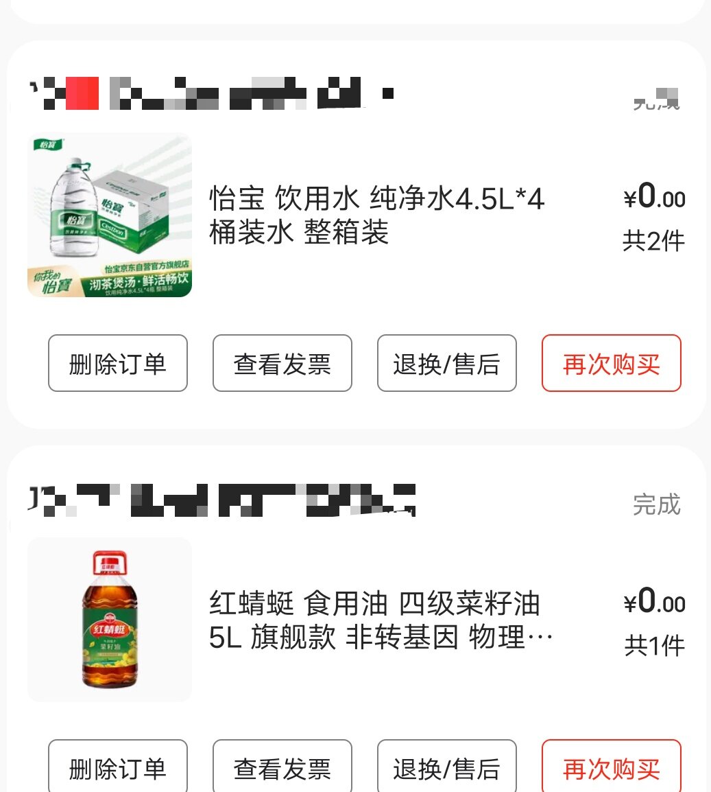 还是不要钱的舒服,今天看了这些订单好久没有买东西了,翻出来居然还有这么多,一个人也用不了这么多,屋里都堆积了5箱4升怡宝,冬天来了喝水少了