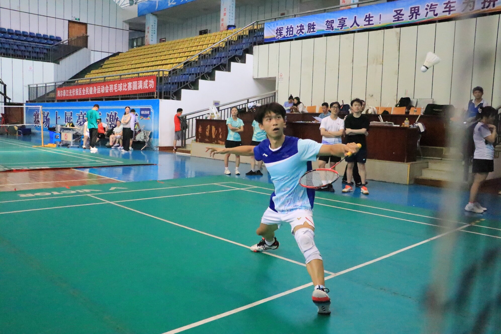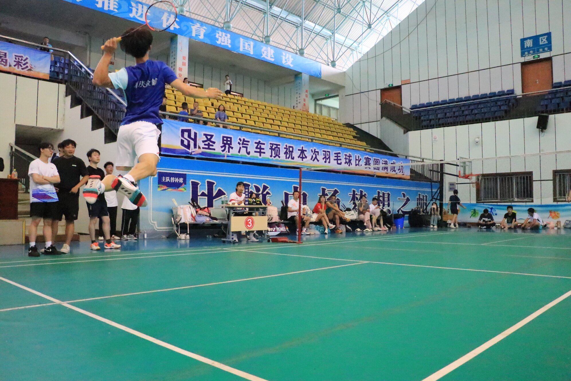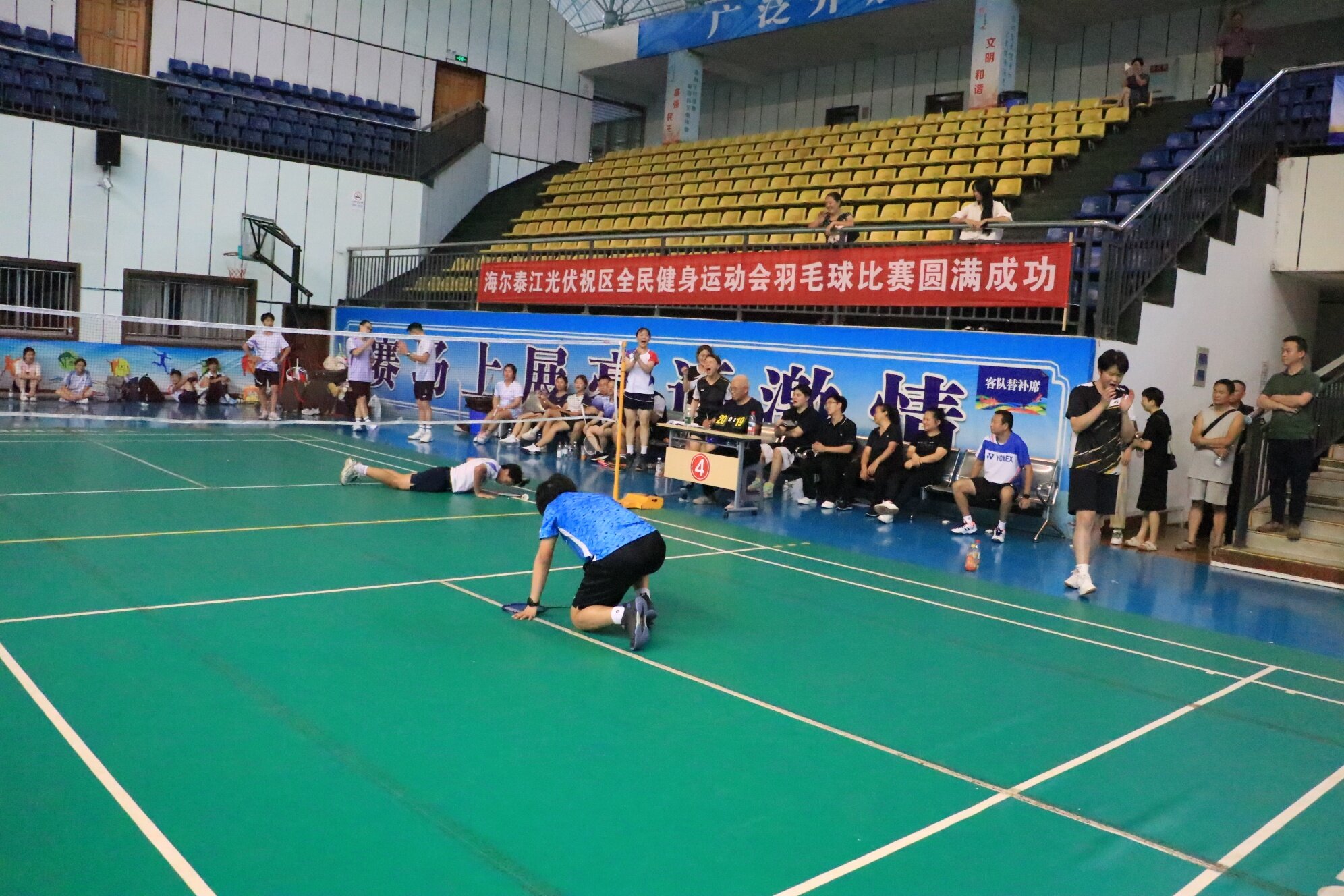 横幅垂落映赛场。