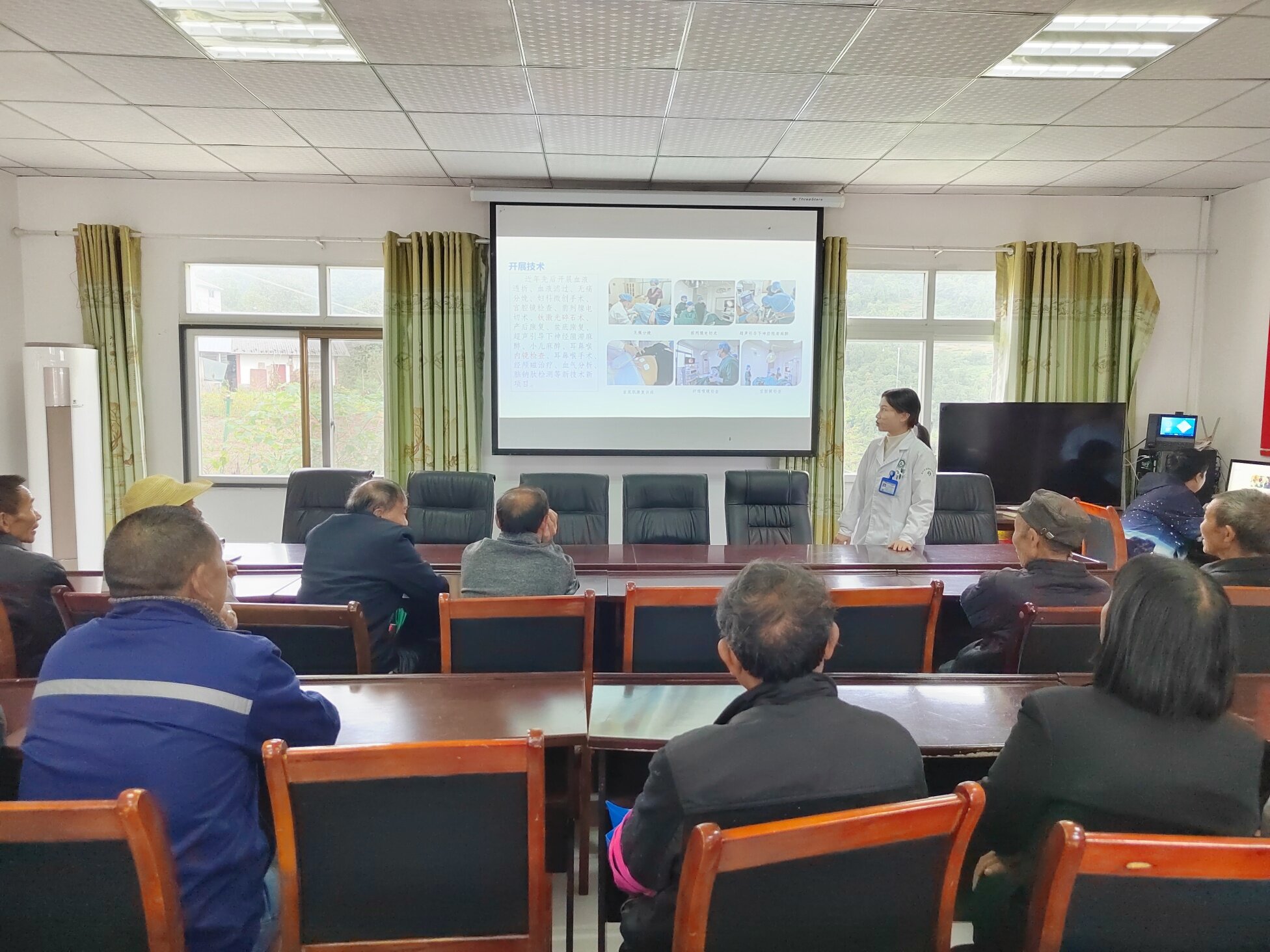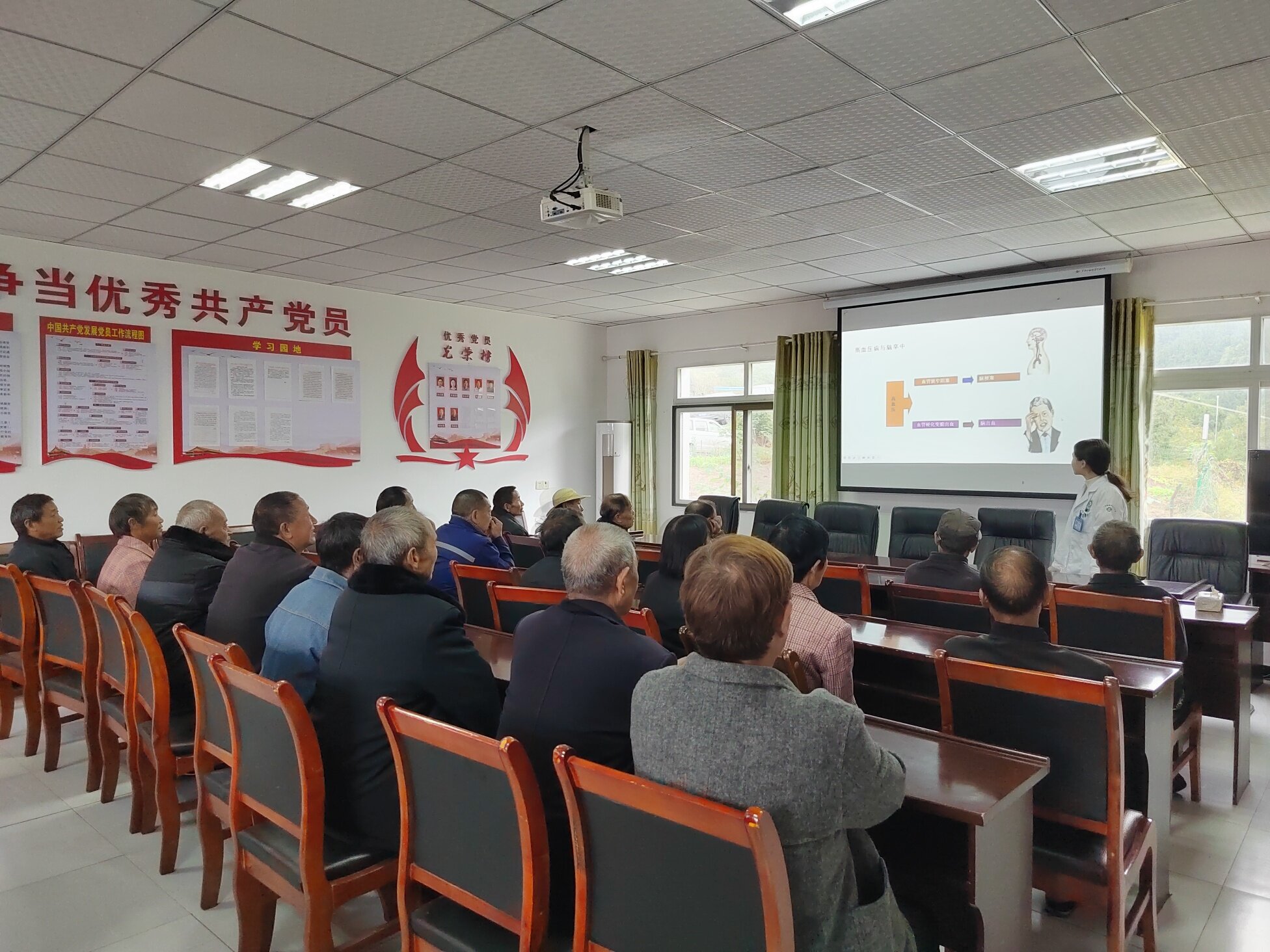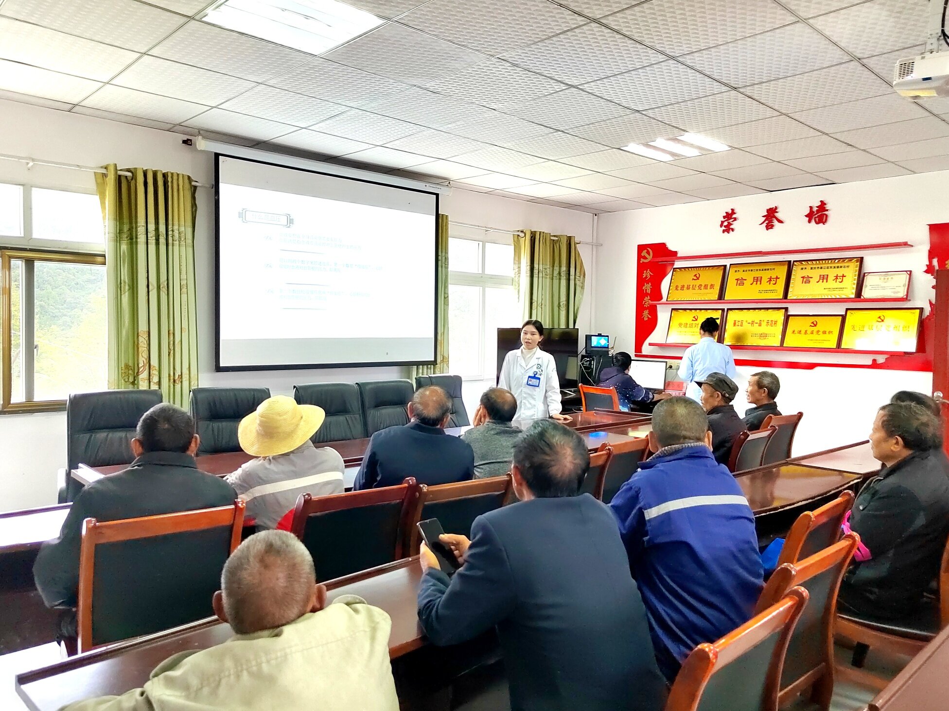 义诊结束后,健康讲座在村委会会议室准时开讲。内科医生以“高血压病防治”为主题,用通俗易懂的方言,从高血压的病因、症状、危害,到如何通过合理饮食、规律作息、适当运动等方式进行预防和控制,进行了深入浅出的讲解。讲座中,她还与老人们积极互动,针对大家提出的“降压药能不能停”“保健品能不能代替药品”等问题,逐一进行专业解答,纠正了老人们的一些健康误区。