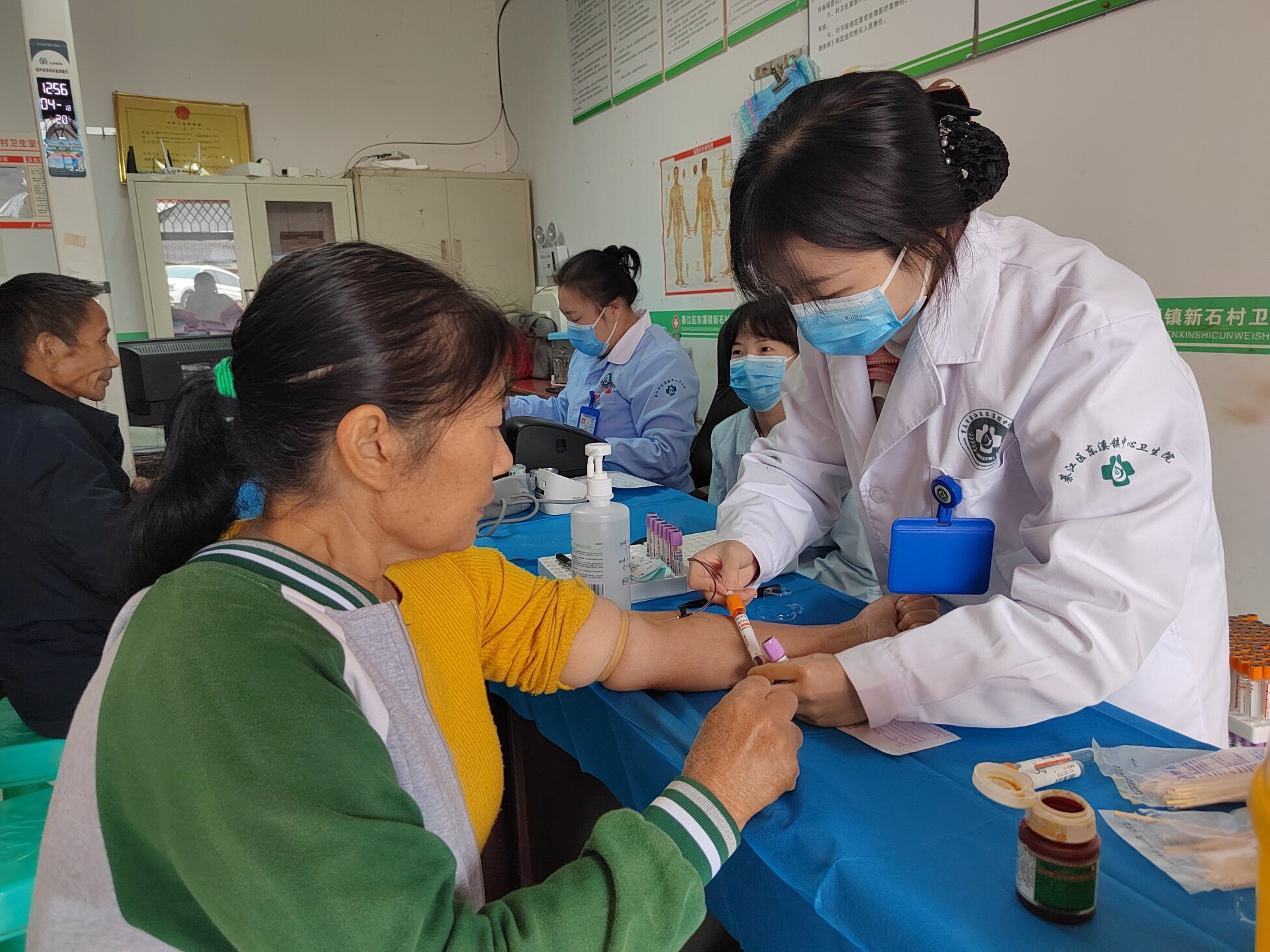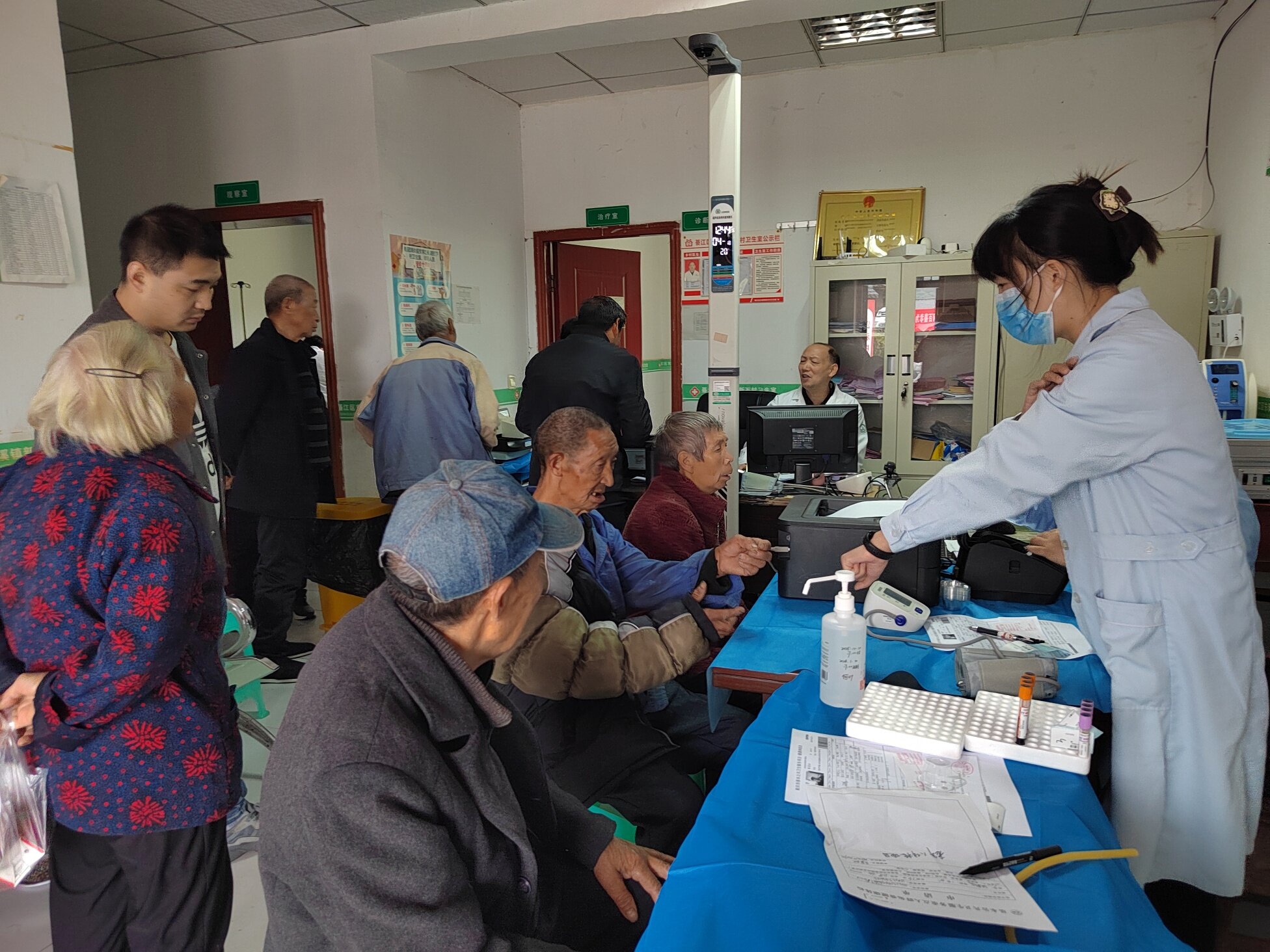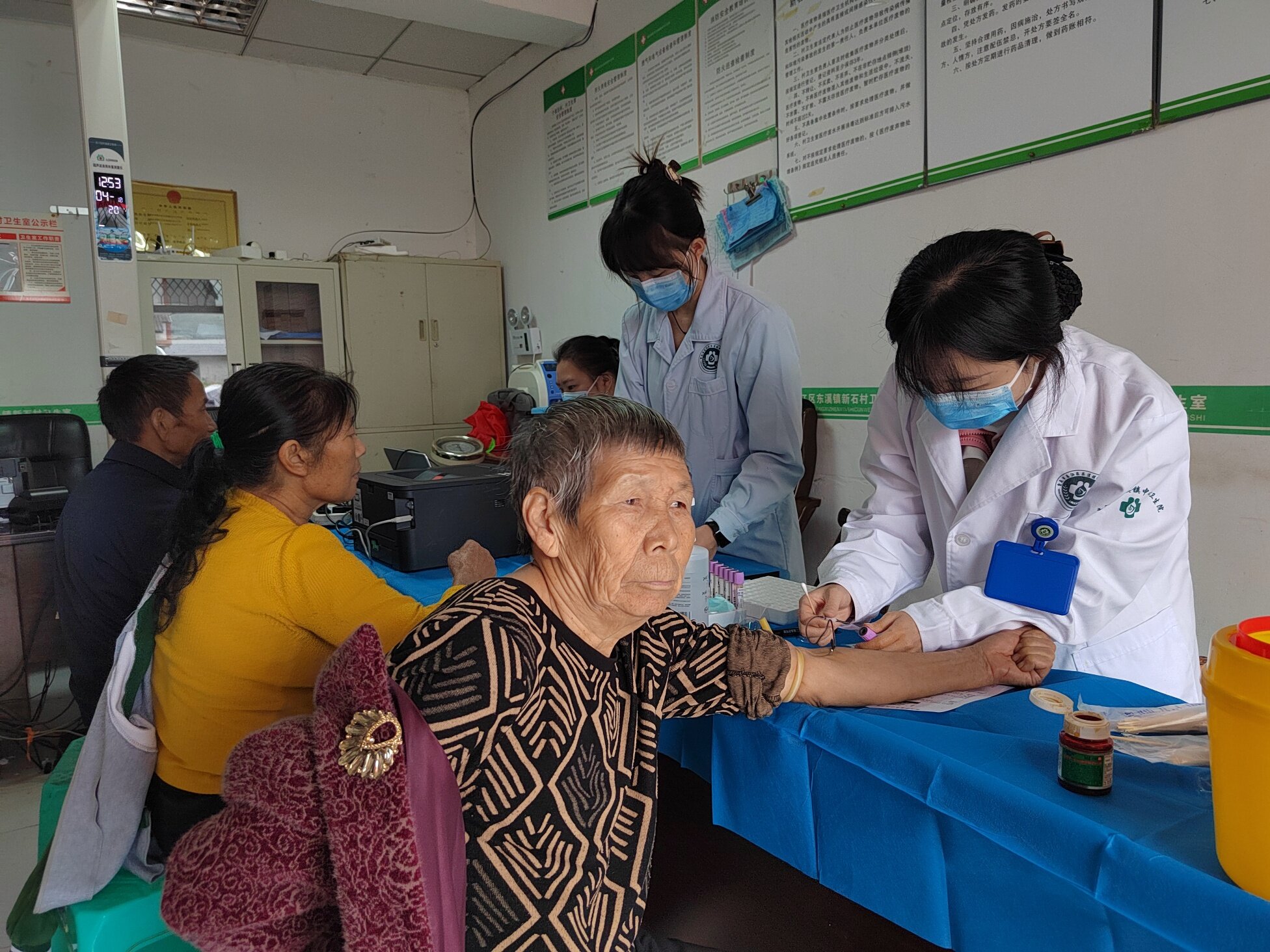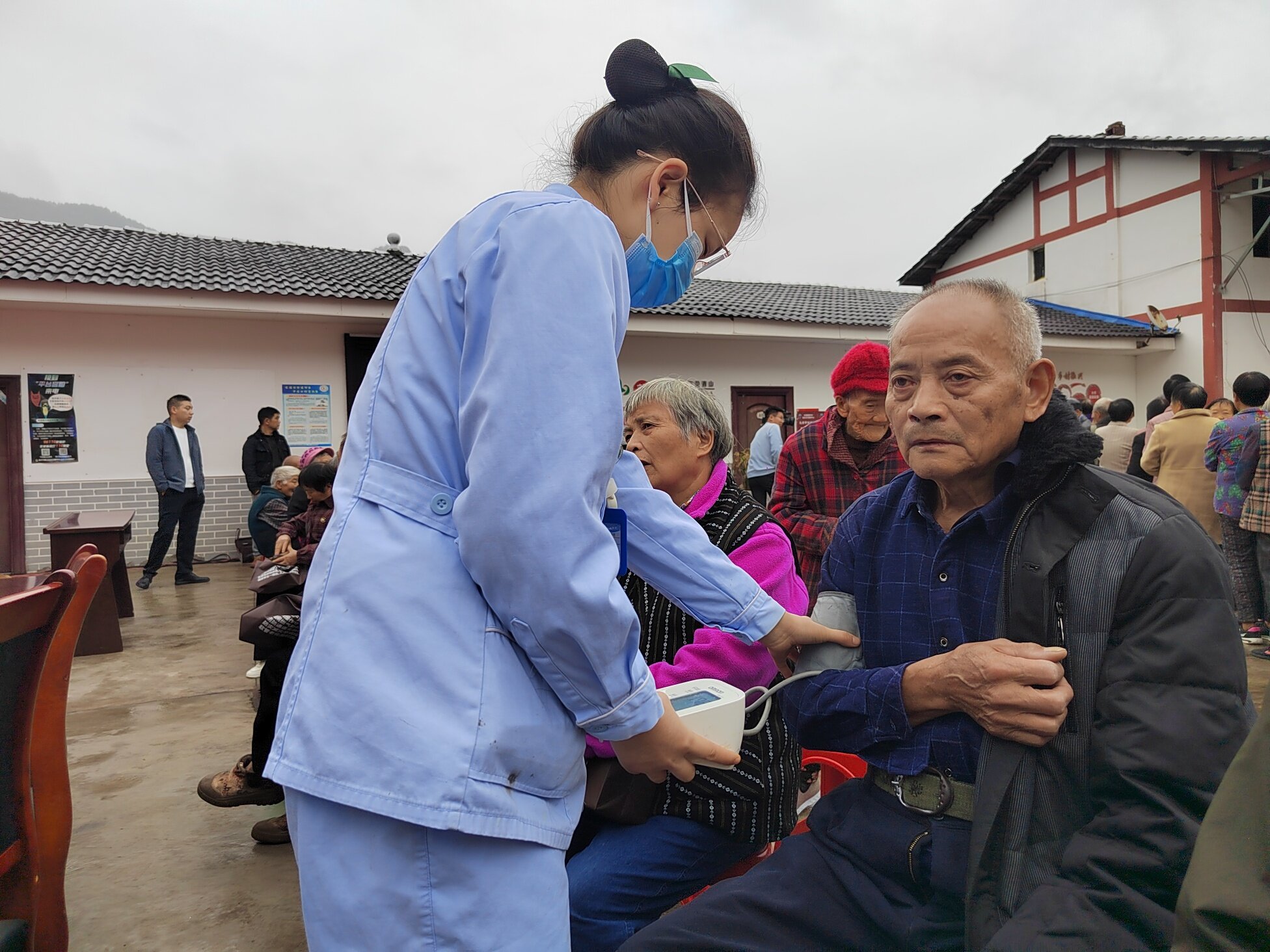 活动现场设在新石村村委会大院,一大早便人头攒动。义诊团队刚一抵达,就迅速搭建起临时诊疗点,设置了内科、外科、血压血糖检测、健康咨询等多个服务台。老人们在村干部和志愿者的引导下,有序排队等候,脸上满是期待。“我这血压最近总不稳定,您帮我看看是不是药得调一调?”“医生,我这腿一到阴雨天就疼,您给瞧瞧是怎么回事?”面对老人们的询问,医务人员耐心细致地一一作答。