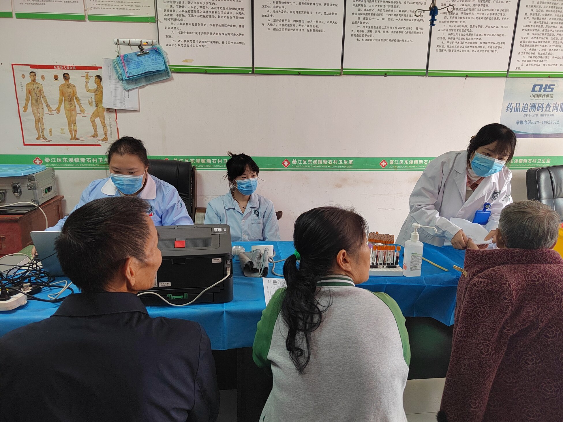岁岁重阳,今又重阳。在传统佳节重阳节来临之际,为切实关爱农村老年群体健康,10月21日上午,东溪镇中心卫生院院长张梅带领10余名医疗骨干组成的义诊团队,深入新石村开展“情暖重阳·健康护航”义诊活动,为村里的老人们送上一份特殊的节日“健康礼包”。