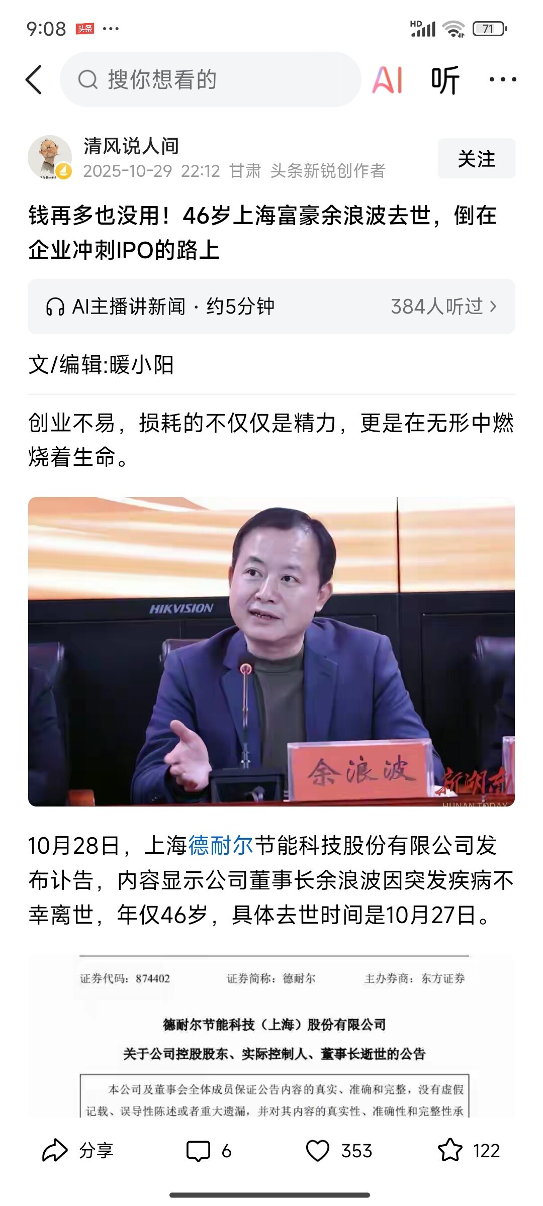 46岁的有钱人,就这样走了,不管你是什么身份,不管你有钱没钱,只要你还健康的活在当下就是胜利者!
