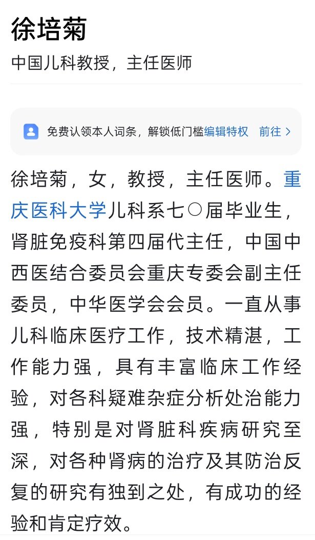 去重庆南岸弹子石武警医院,找儿科徐培菊教授,她是资深专家,她以前是重庆儿童医院的肾病专科专家
