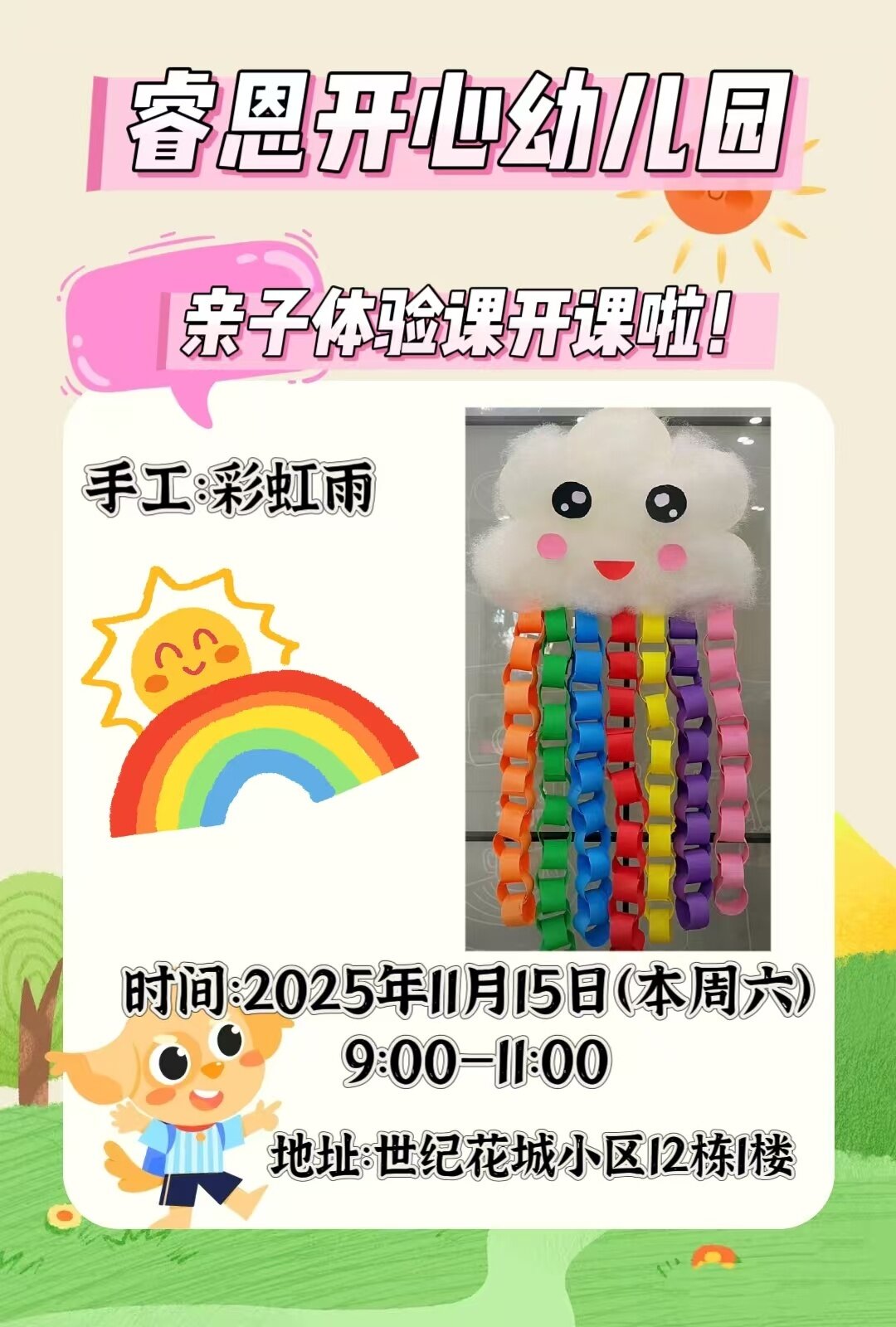 地址:孟家院新兴购超市楼上睿恩幼儿园