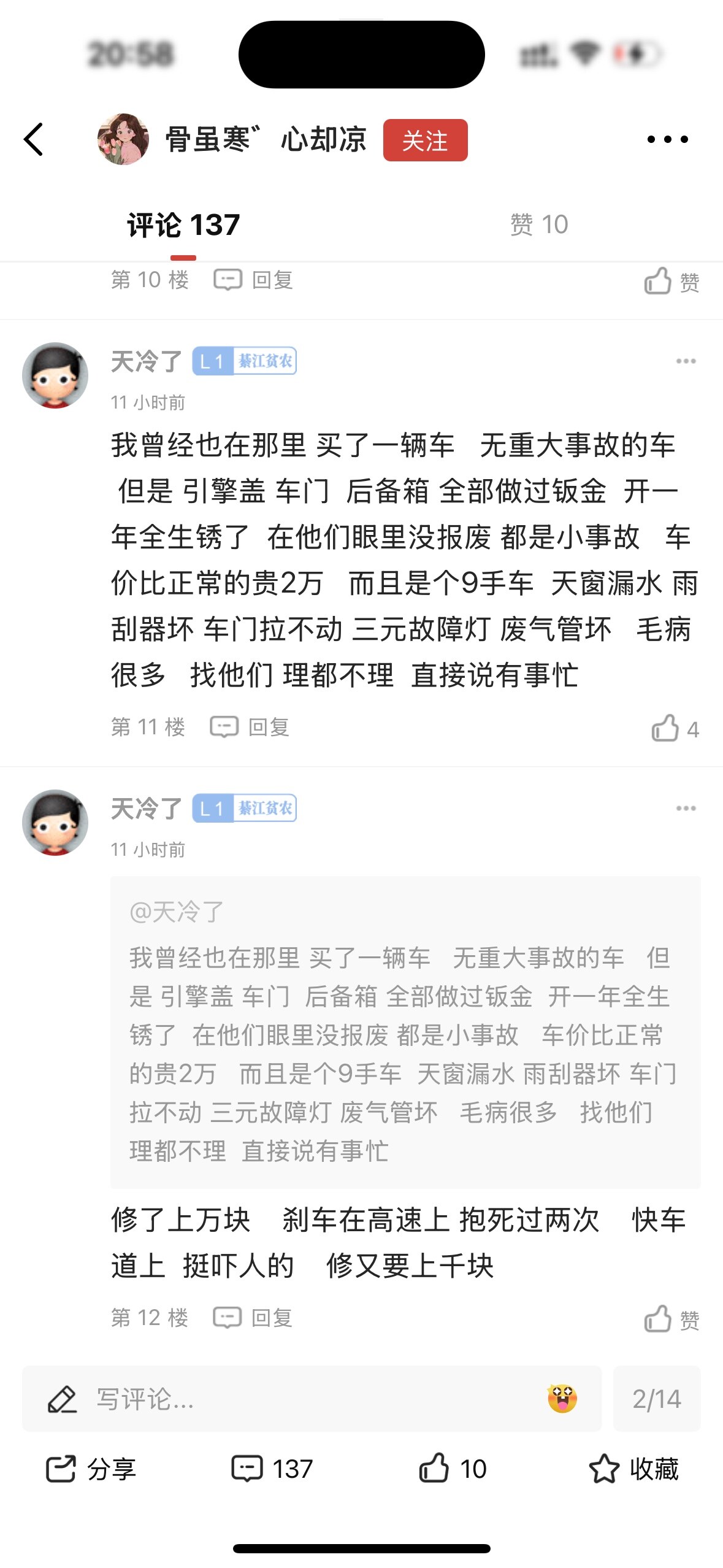 他家最*Z了,两年前买了个车,合同写得没有事故,结果后面发现是事故车,找他还不承认,不得了的很,还说随便我囊个办